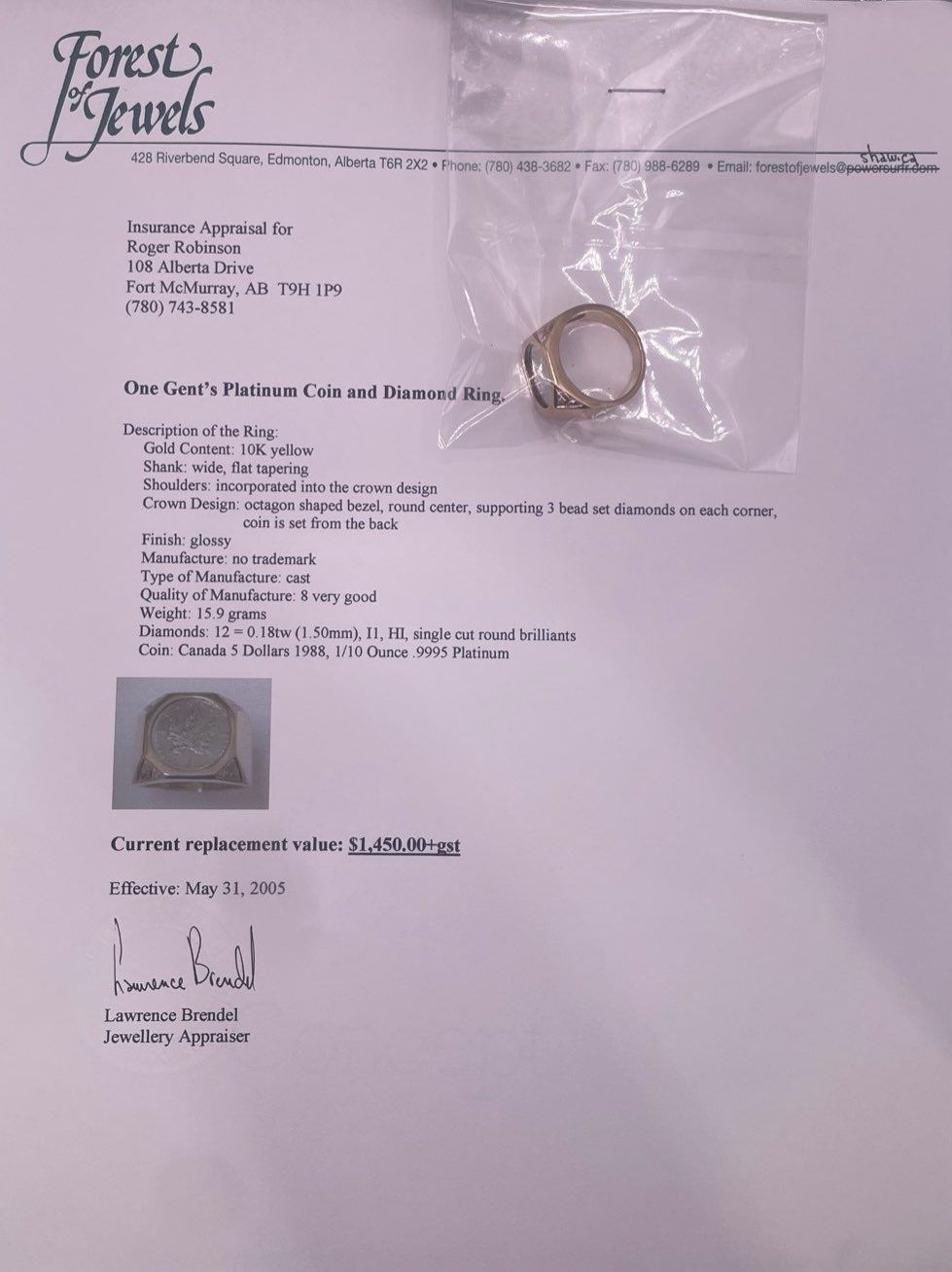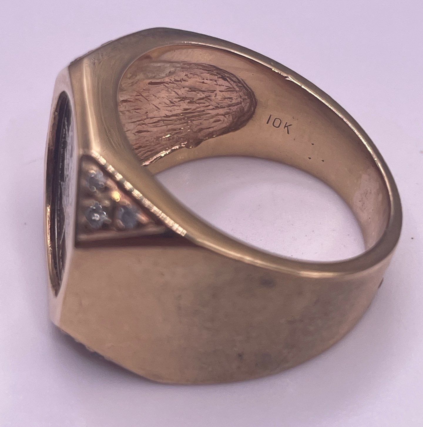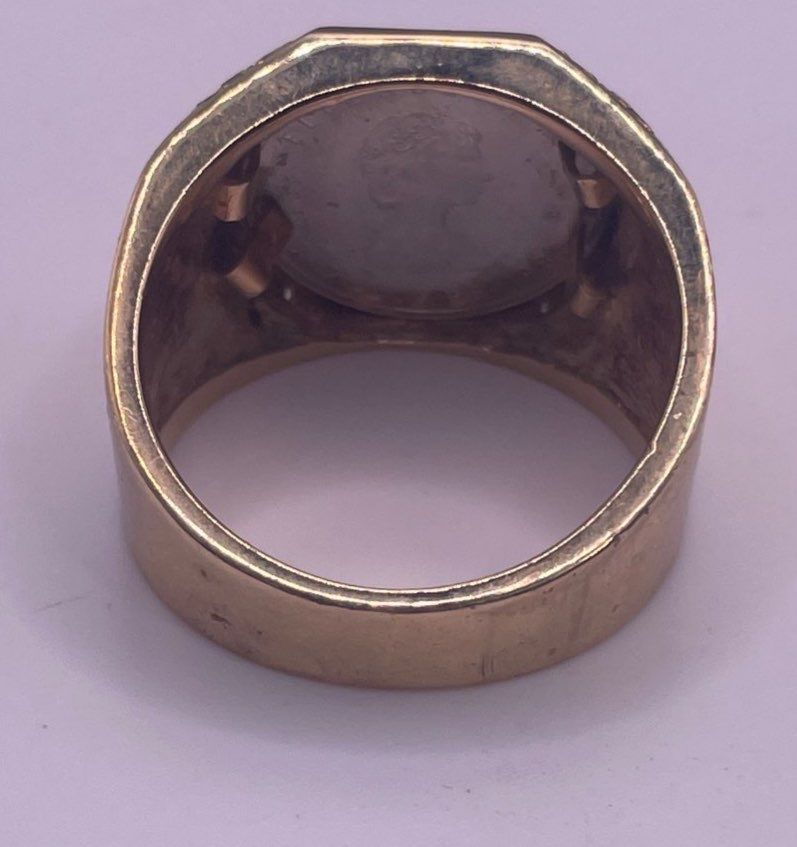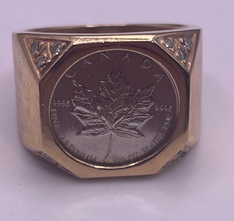 One Gent's Platinum Coin & Diamond Ring 10K YG; Ring Weighs 15.9g