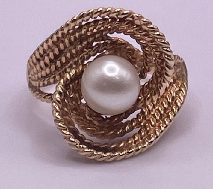 One Lady's Pearl Ring 14 YG, Weighs 7.3g
