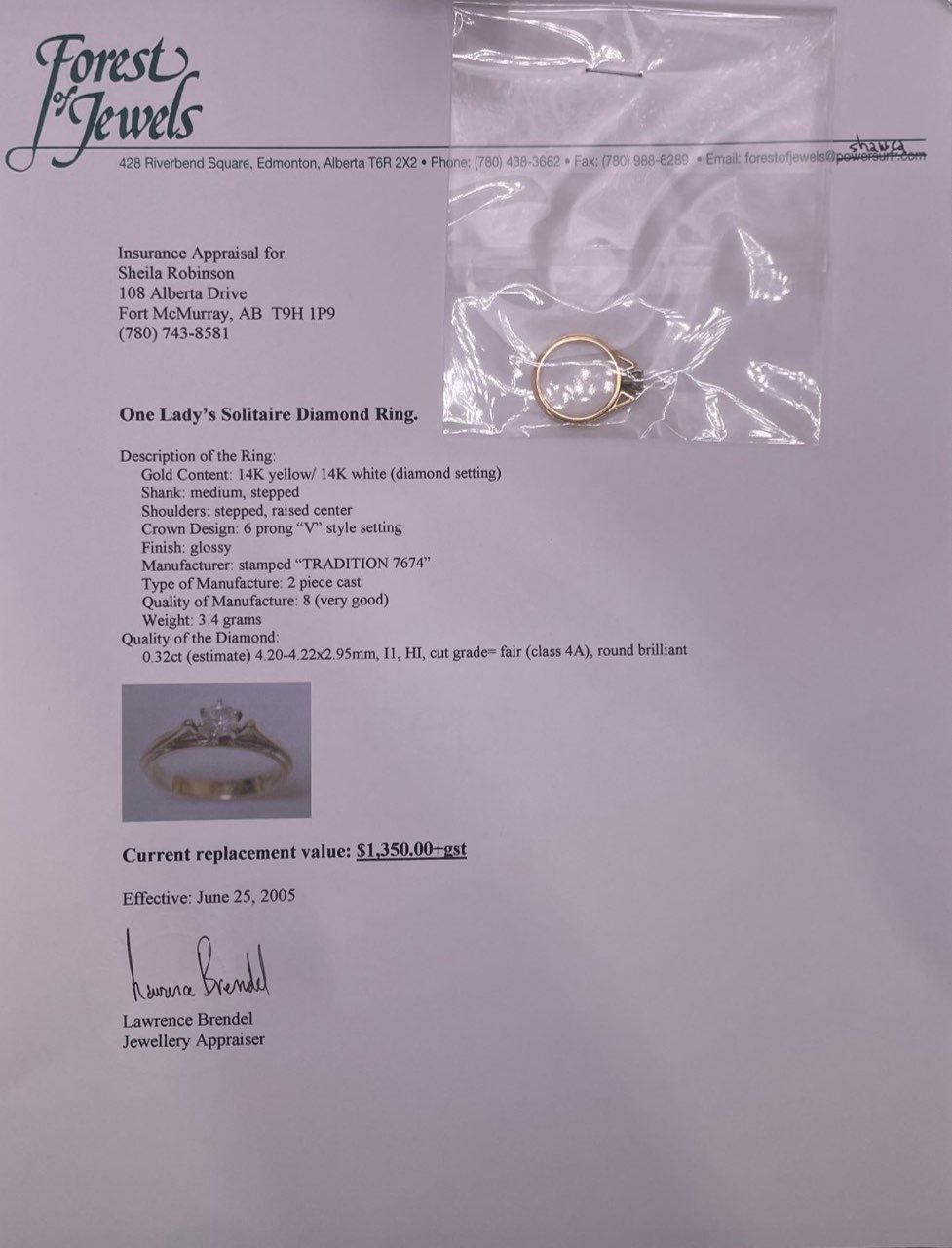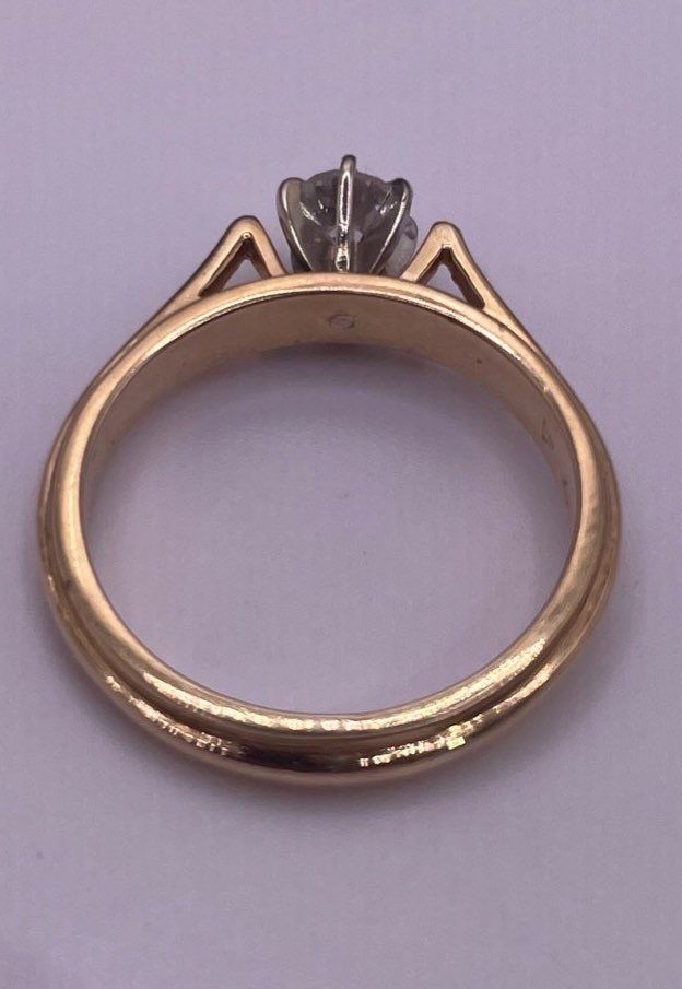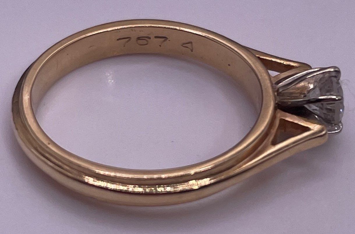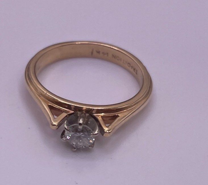 One Lady's Solitaire Diamond Ring 14K YG, Weighs 3.4g