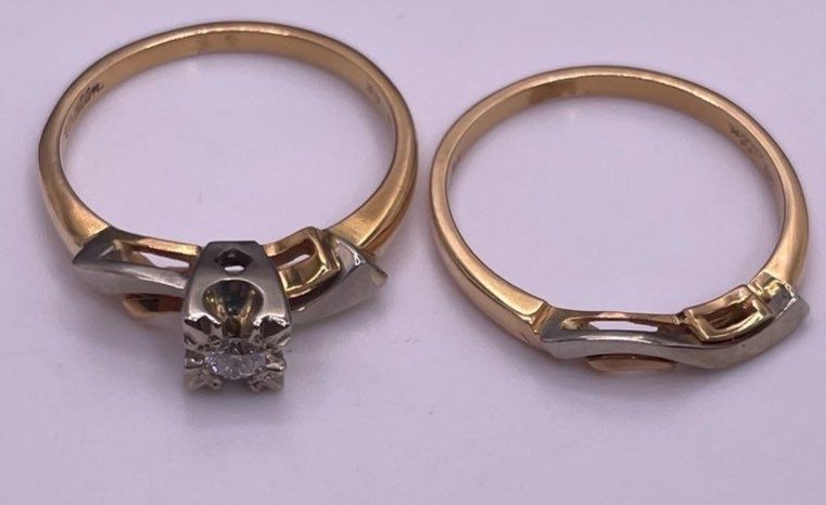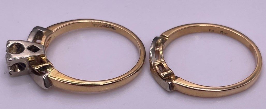One Lady's Solitaire Diamond Ring w/ Matching Gold Band 14K YG; Ring Weighs 2.9g, Band Weighs 1.6g
