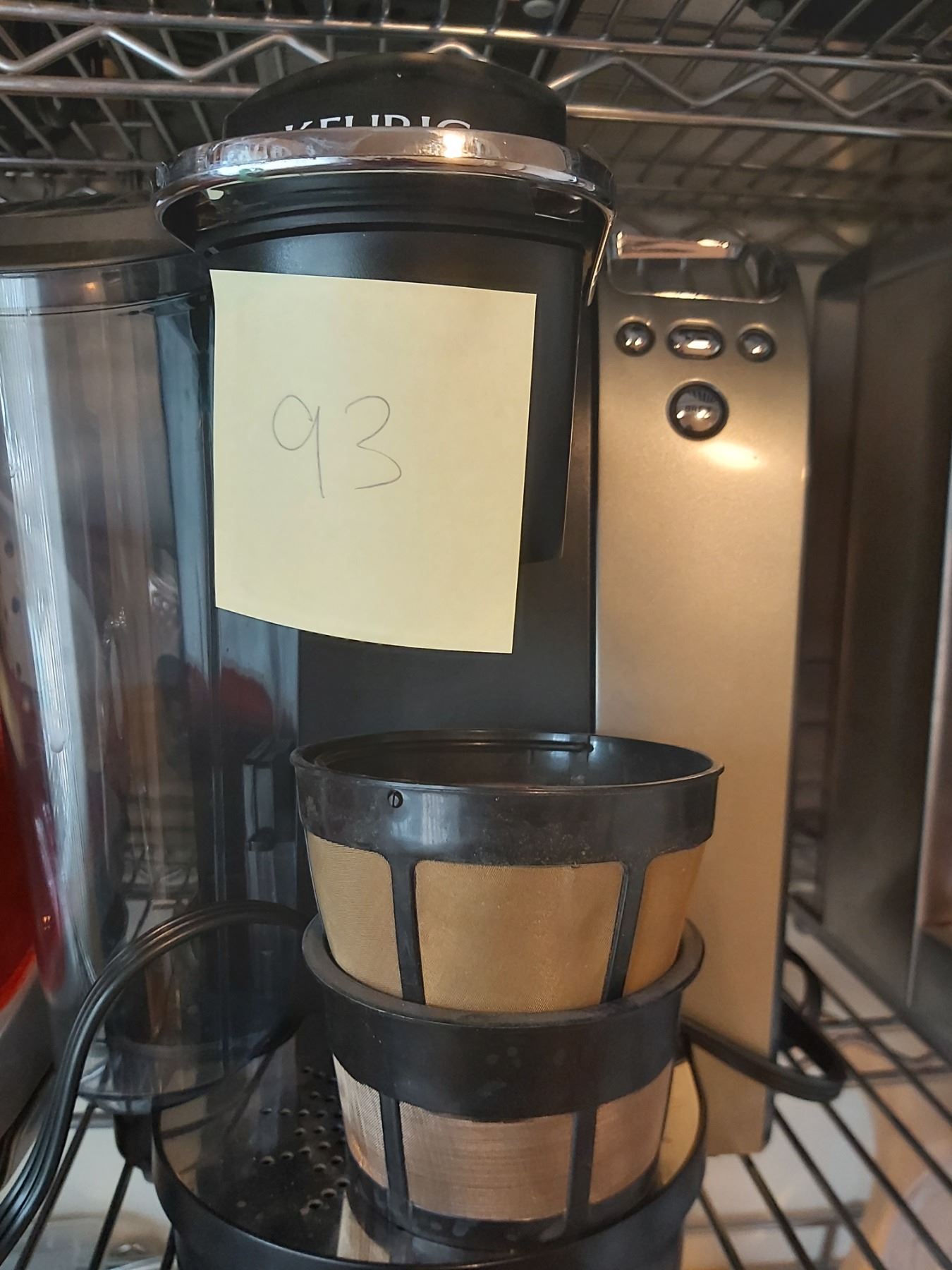 One Red Keurig and One Black Keurig (coffee pod machines)