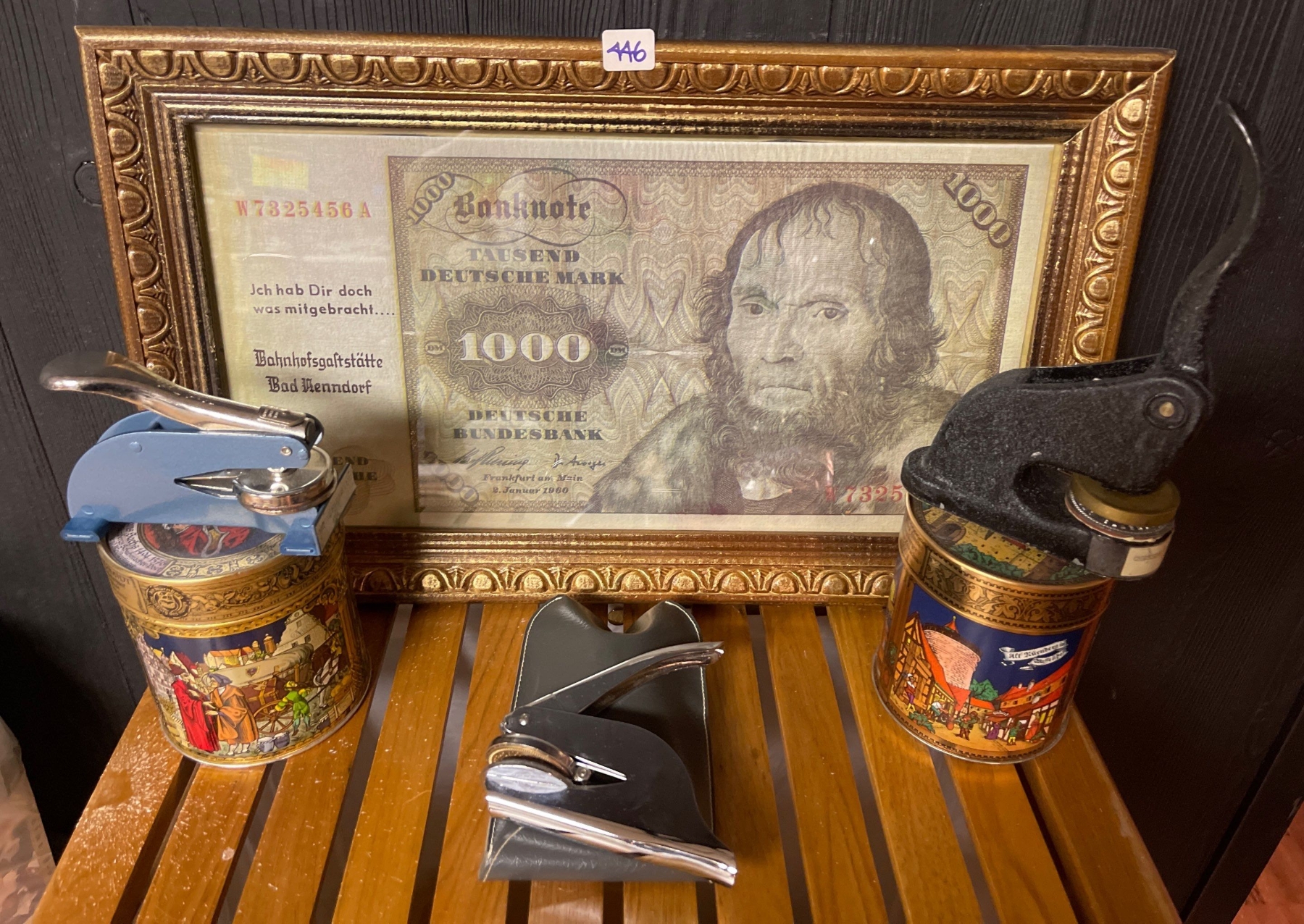 One Thousand Dollar Bill in Intricate Golf Frame w/ Vintage Collectable Tins & More