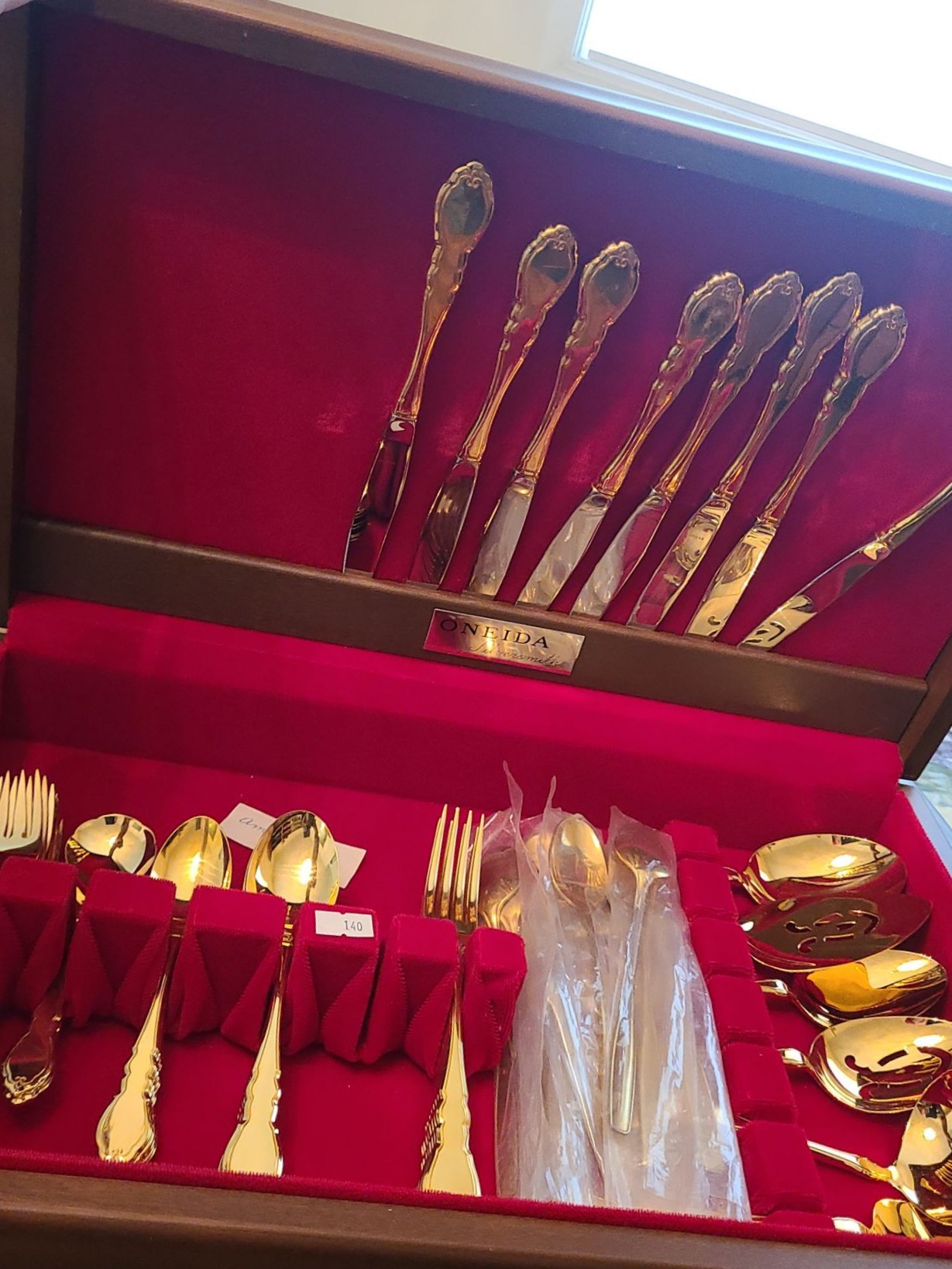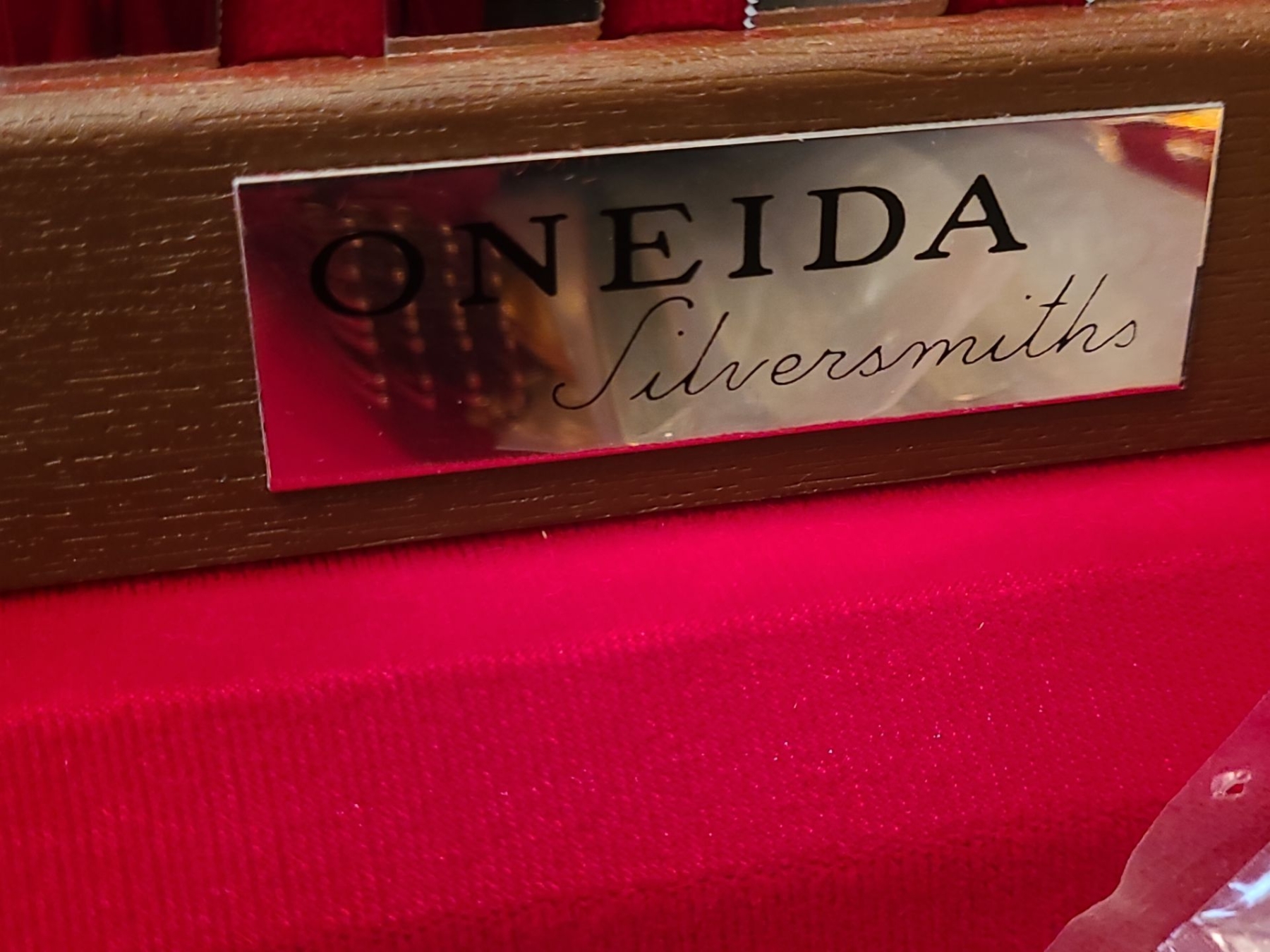Oneida Stainless Golden Cutlery and Box 19 W, 11.5 D, 4 T