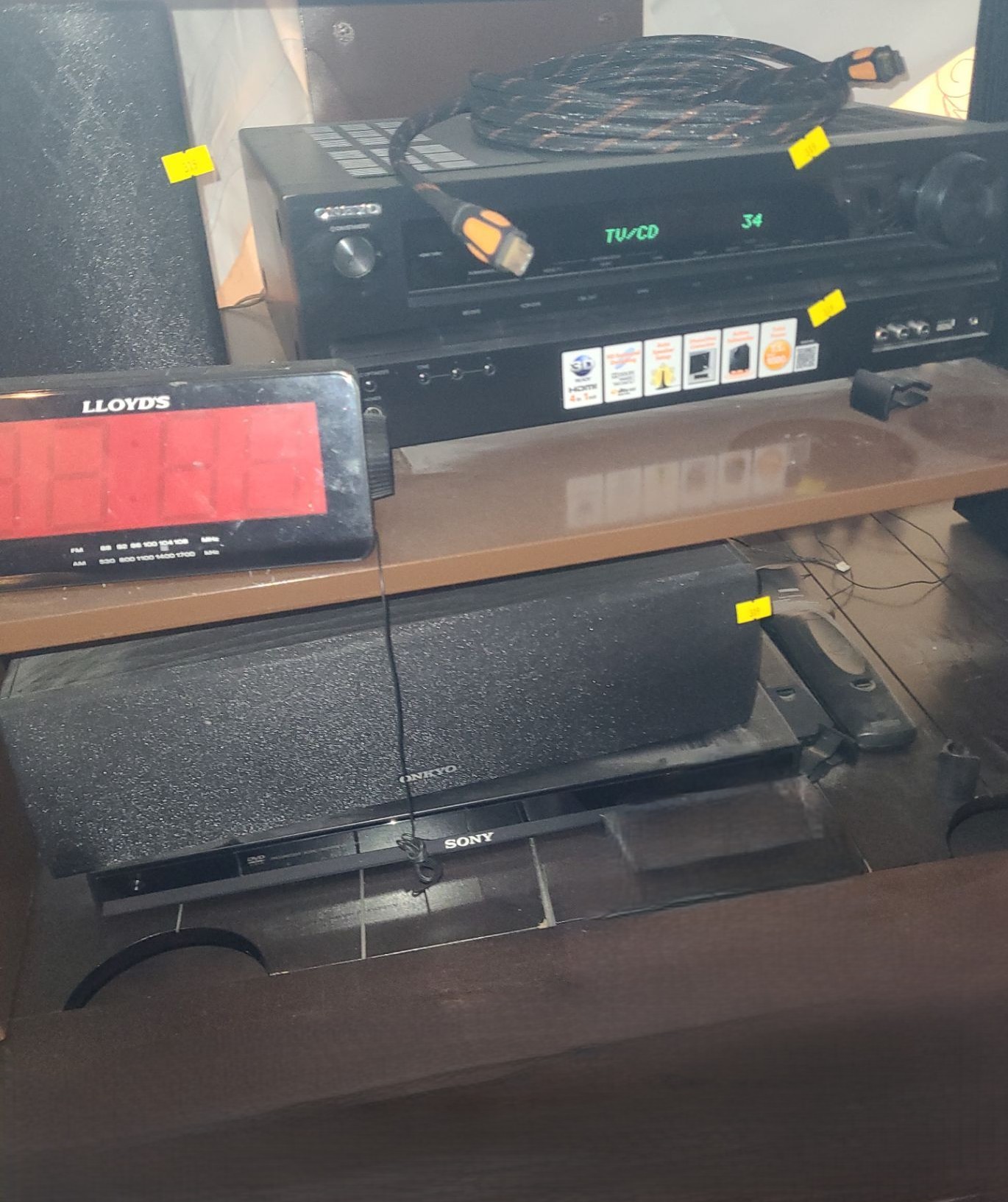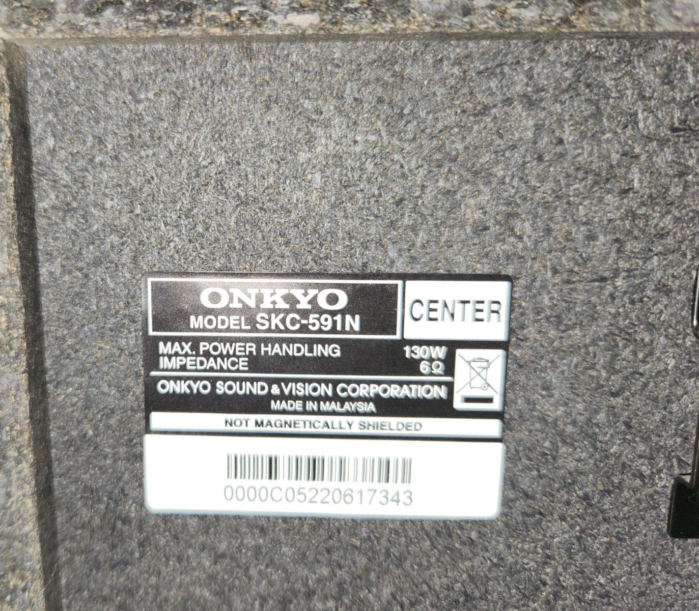 Onkyo Model HT-R591 AV Receiver/Model SKC-591N Speaker, Pioneer Speaker Model T8-TRX800, Sony CD/ DVD Player Model DVP-NS67P- Shelving NOT Included