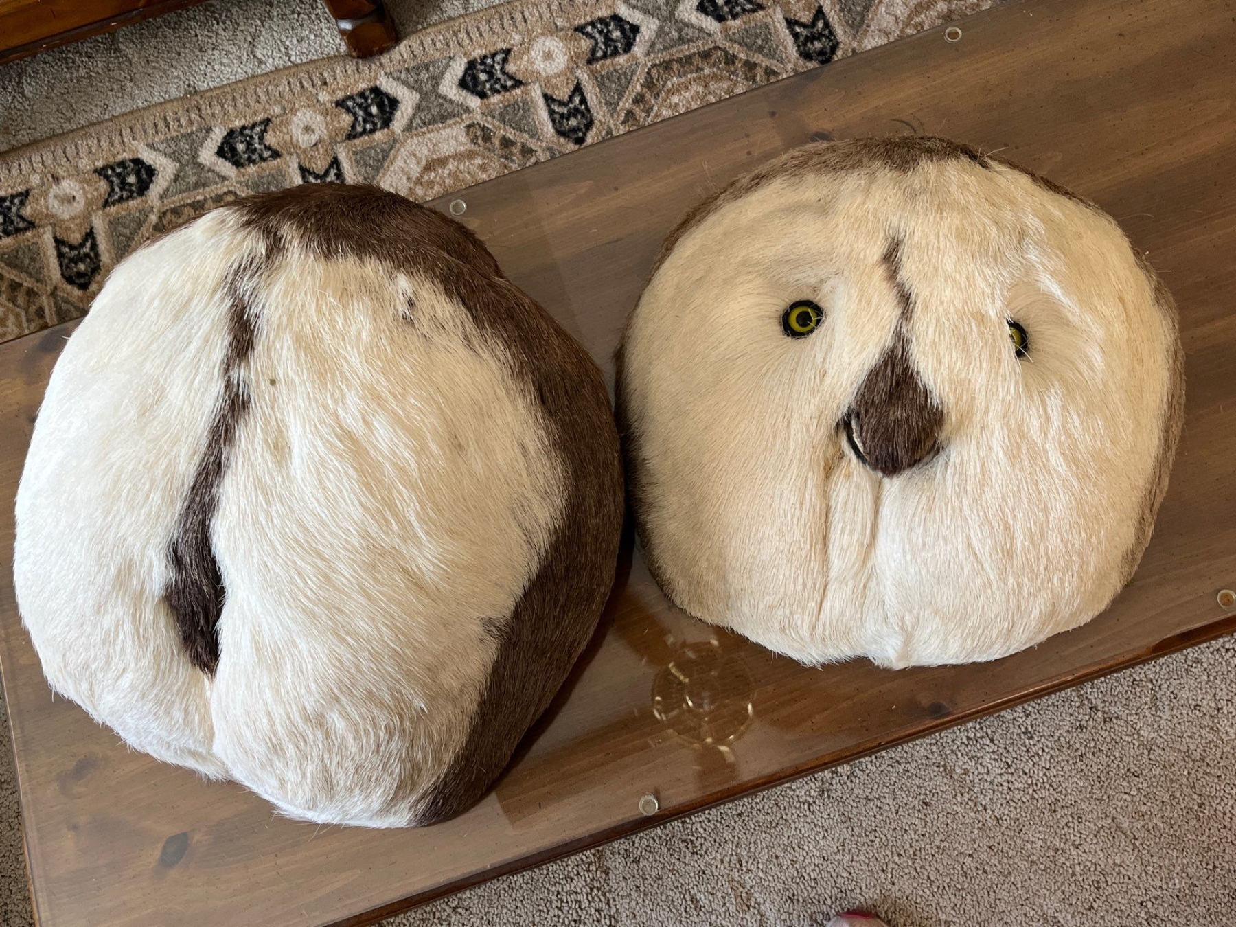 Ookpik faces can refer to the traditional Inuit toy. These are made from original fur from sheep’s hindquarters.