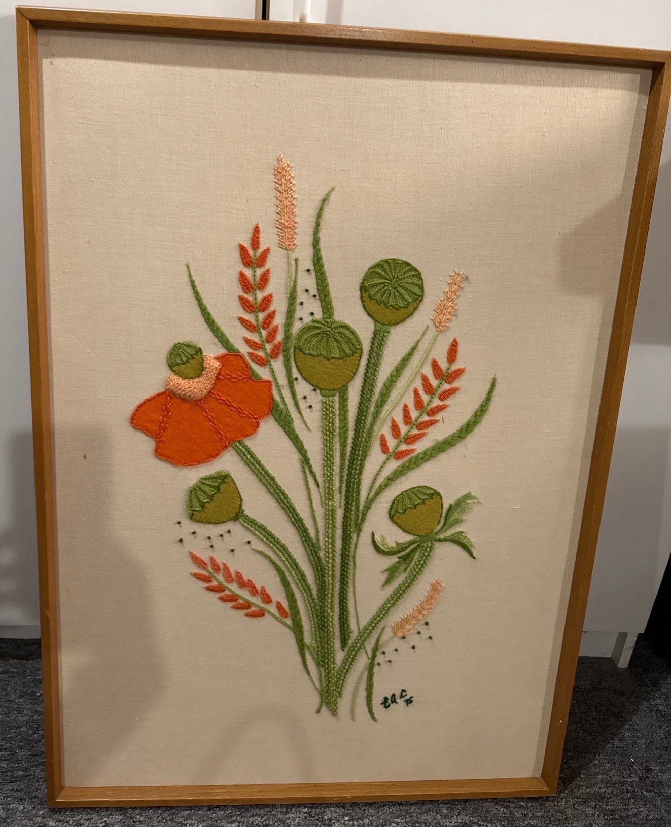 Orange Poppies Needlepoint Art By Eunice Alma Cormode 1975, 25W, 35T