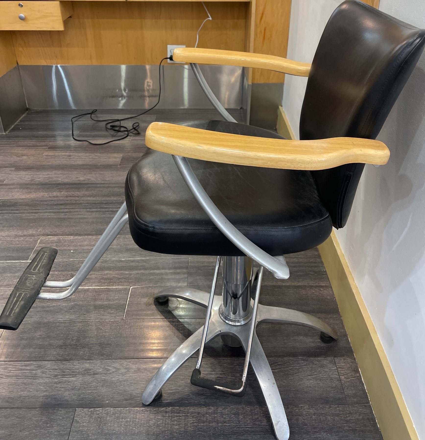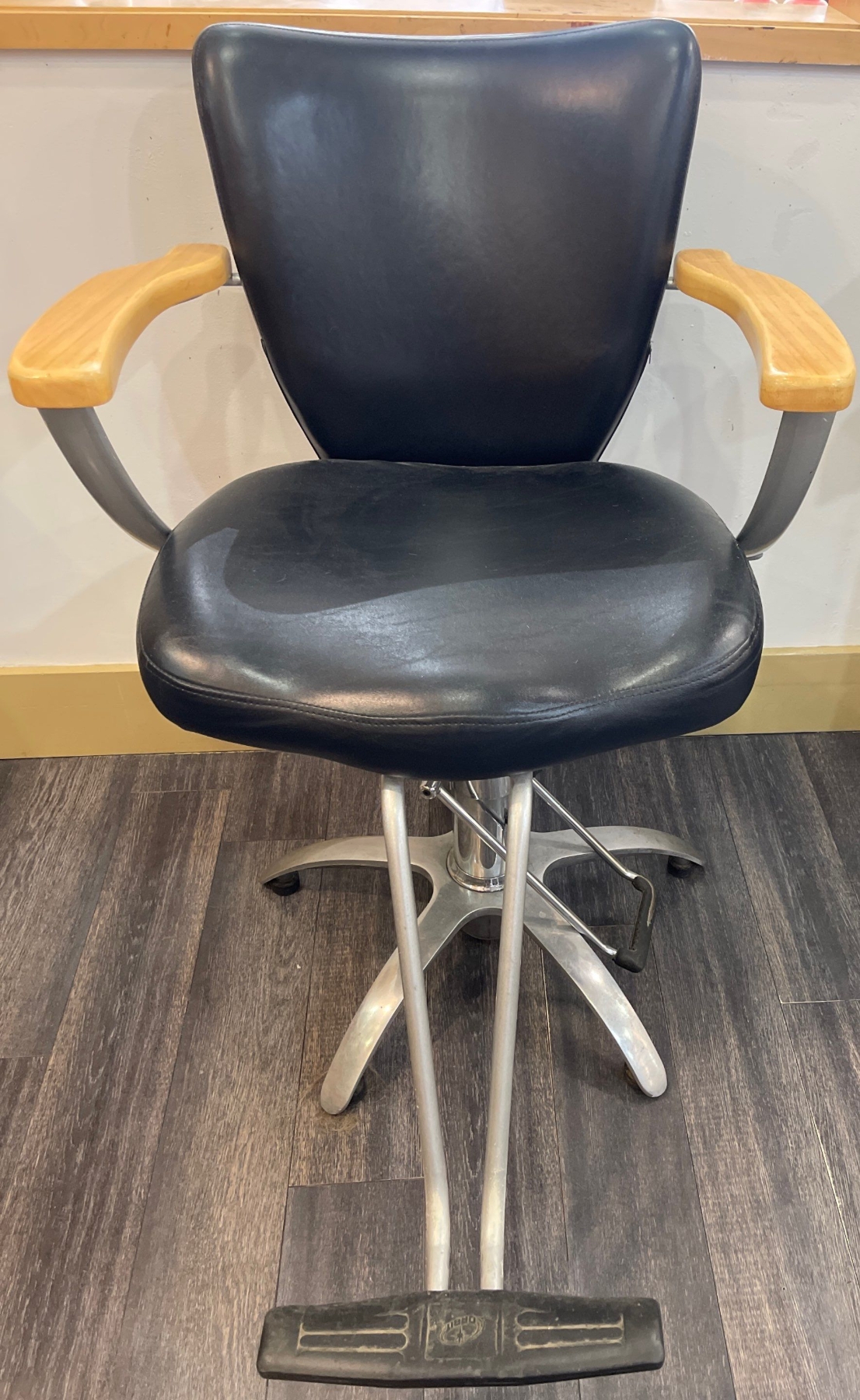 Orbit Hydraulic Salon Styling Chair 1 - Genuine Leather w/ Brushed Nickel - 22x24x37