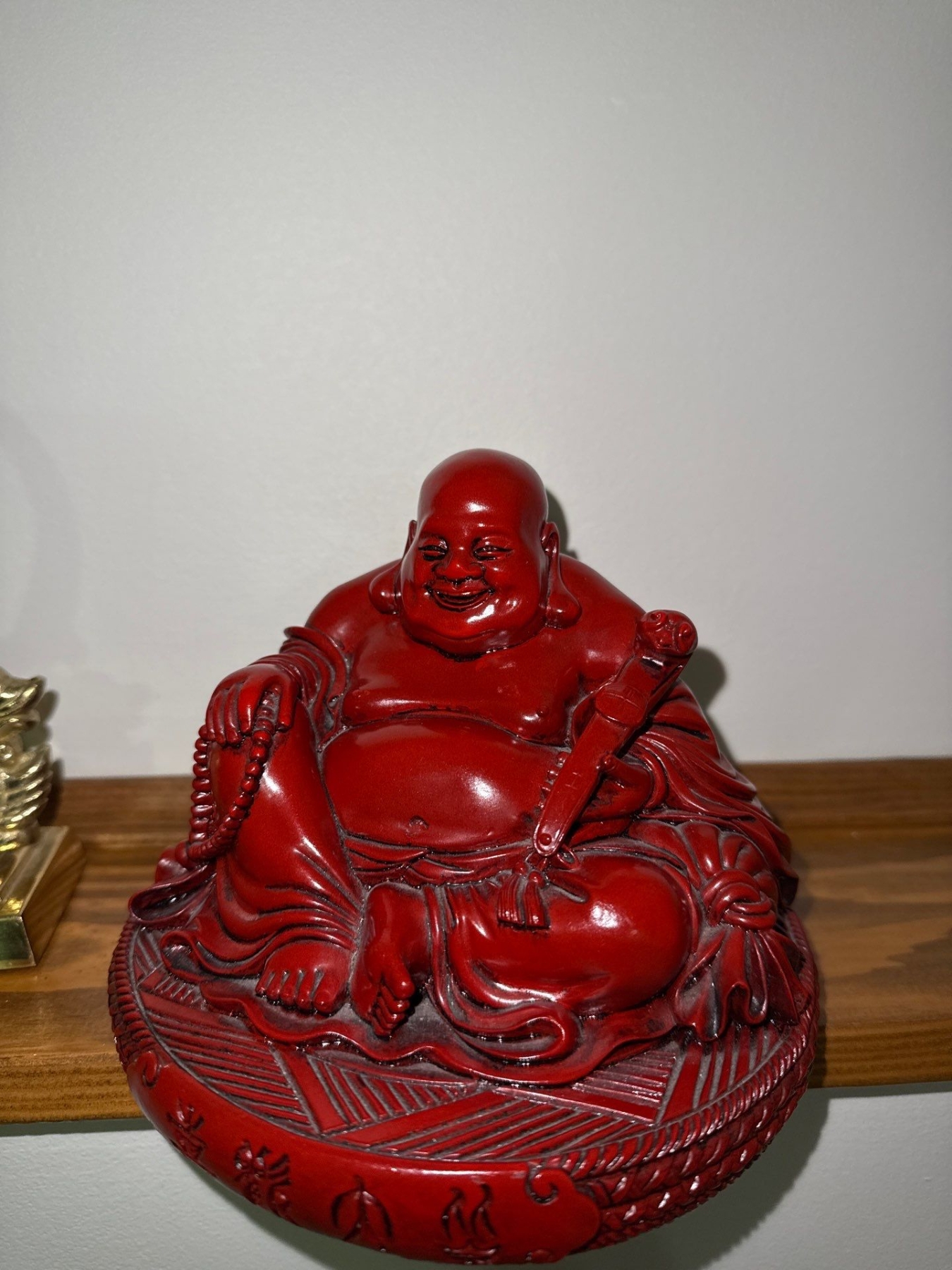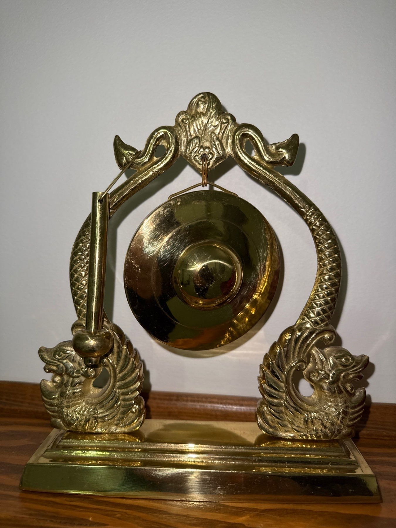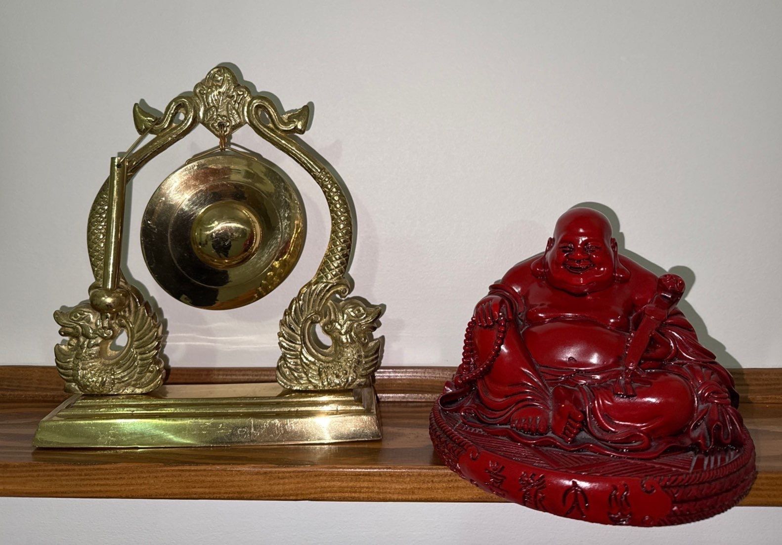 Oriental Brass Gong (8T), w/ Resin Laughing Buddha Figure, Ancient Curios Enterprise