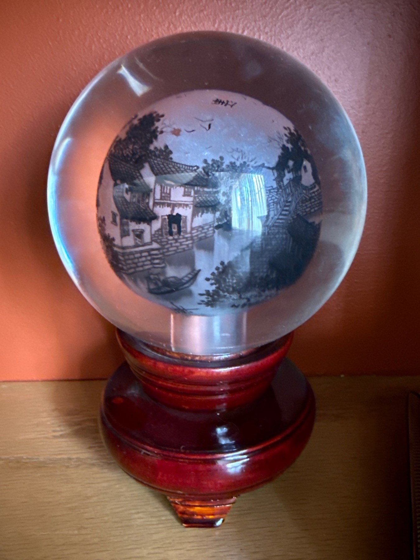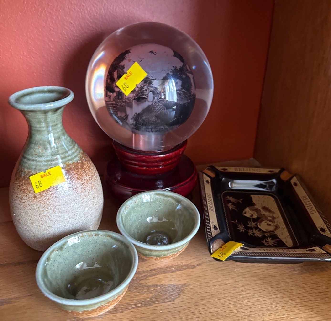 Oriental Decorative Globe, Beijing Plate, Small Stoneware Vase & Bowls