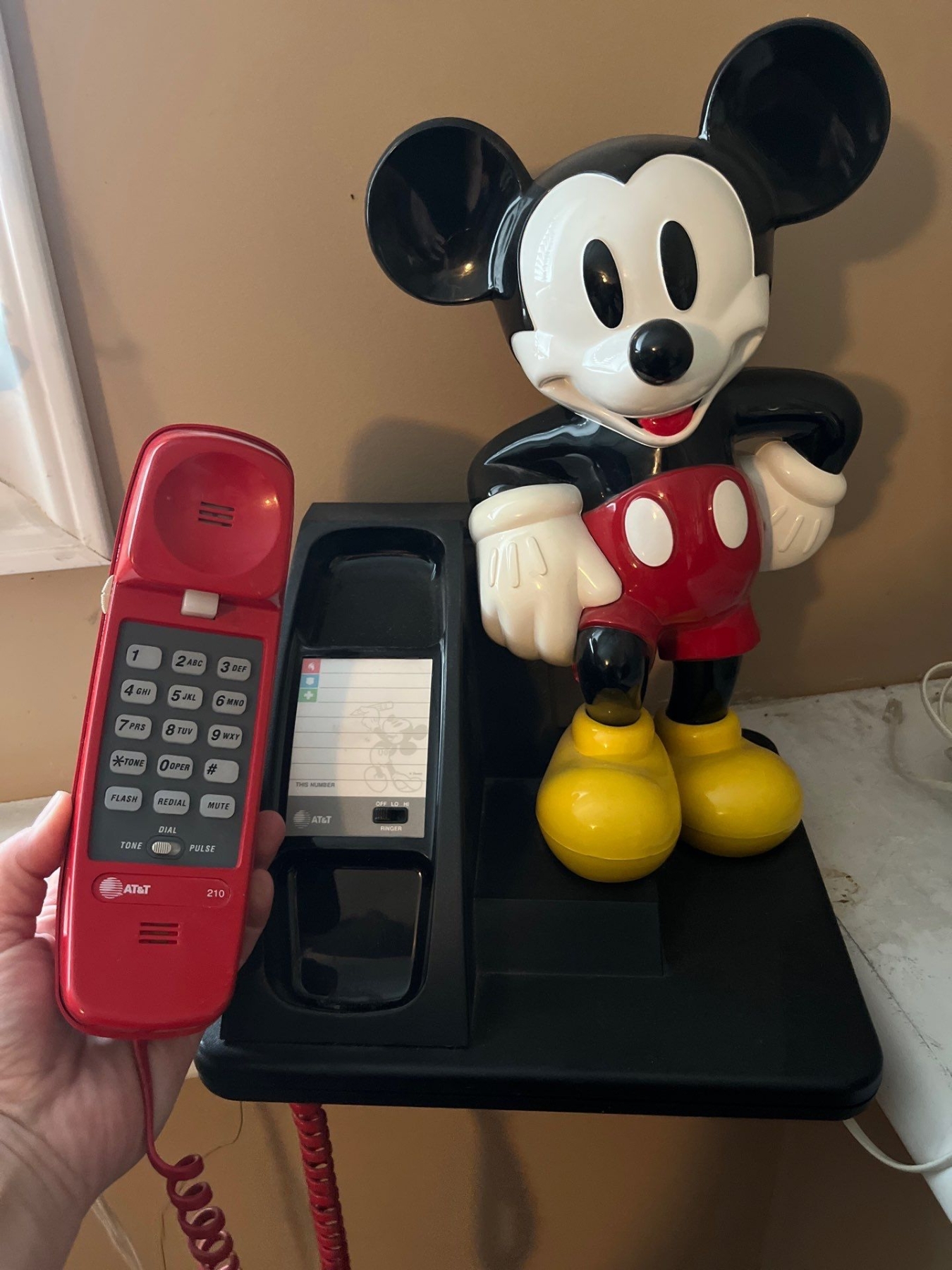 Original Disney Mickey Mouse corded telephone, often referred to as a Mickey Mouse phone