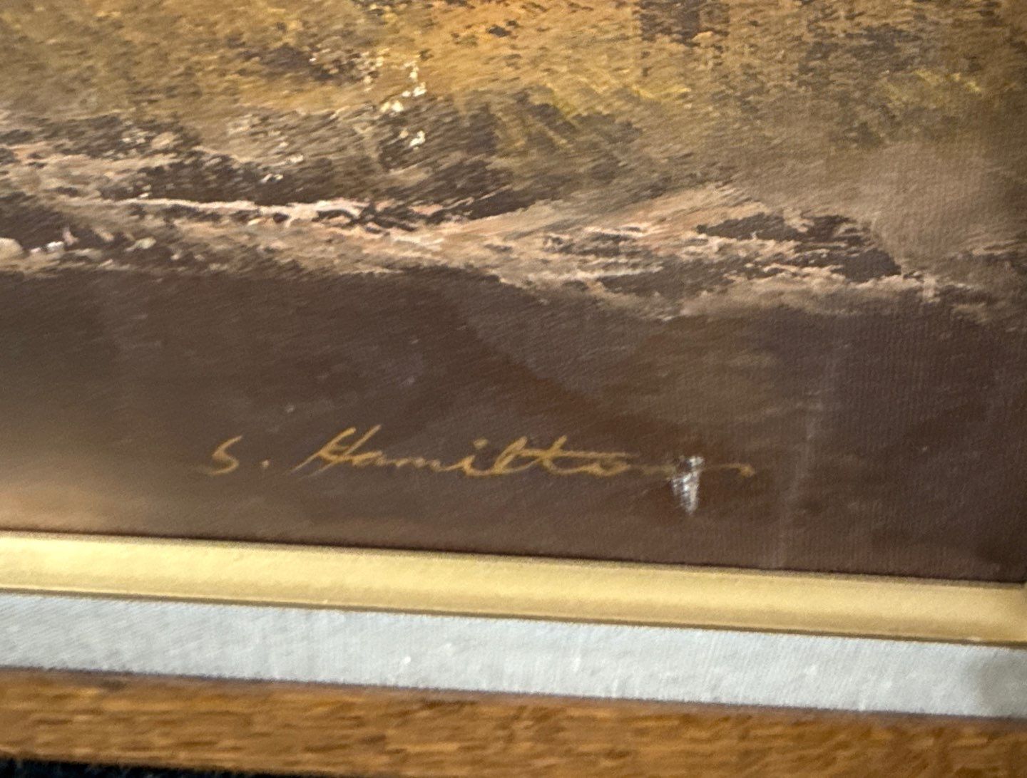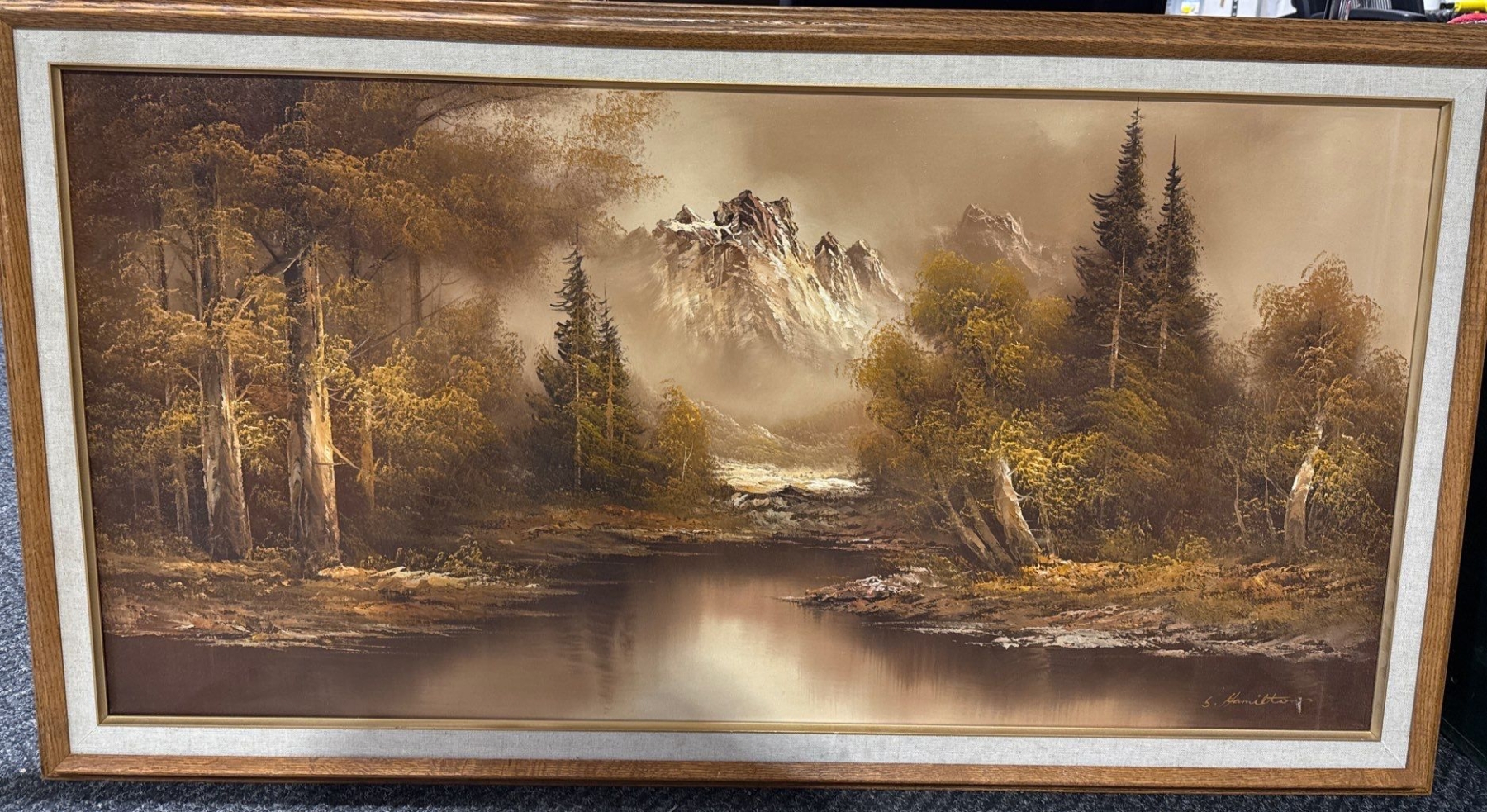 Original Framed Landscape Painting Oil on Canvas by S. Hamilton 52x28"tall