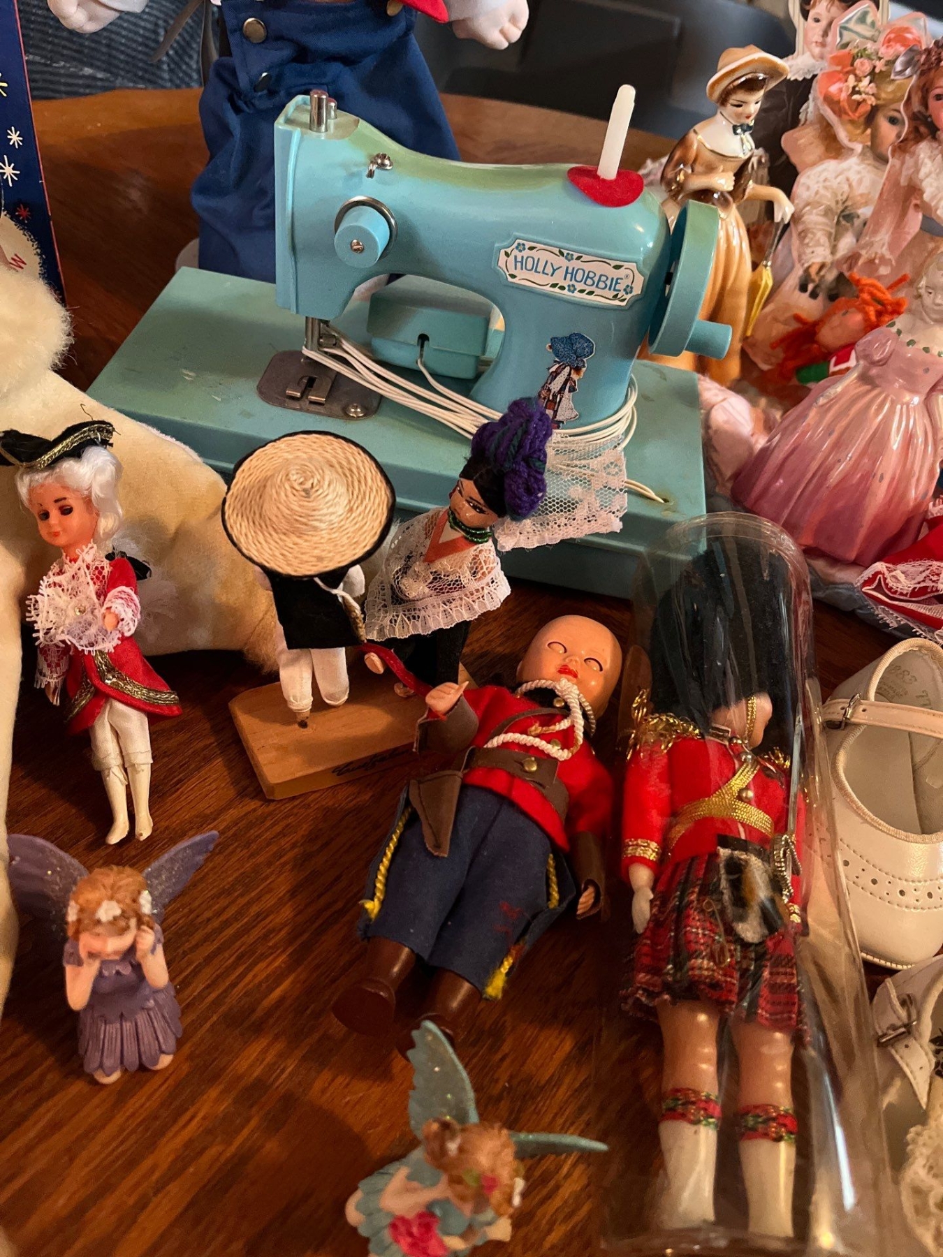 Original Holly, hobby, sewing machine, vintage sailor, boy, angel, doll, and other small collectables