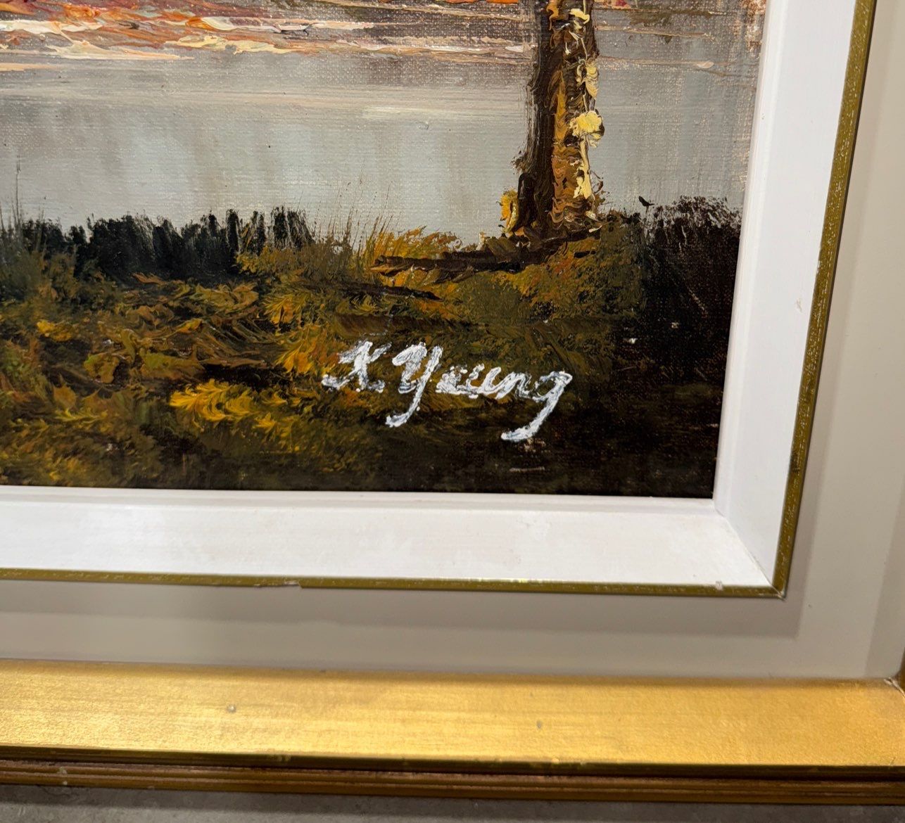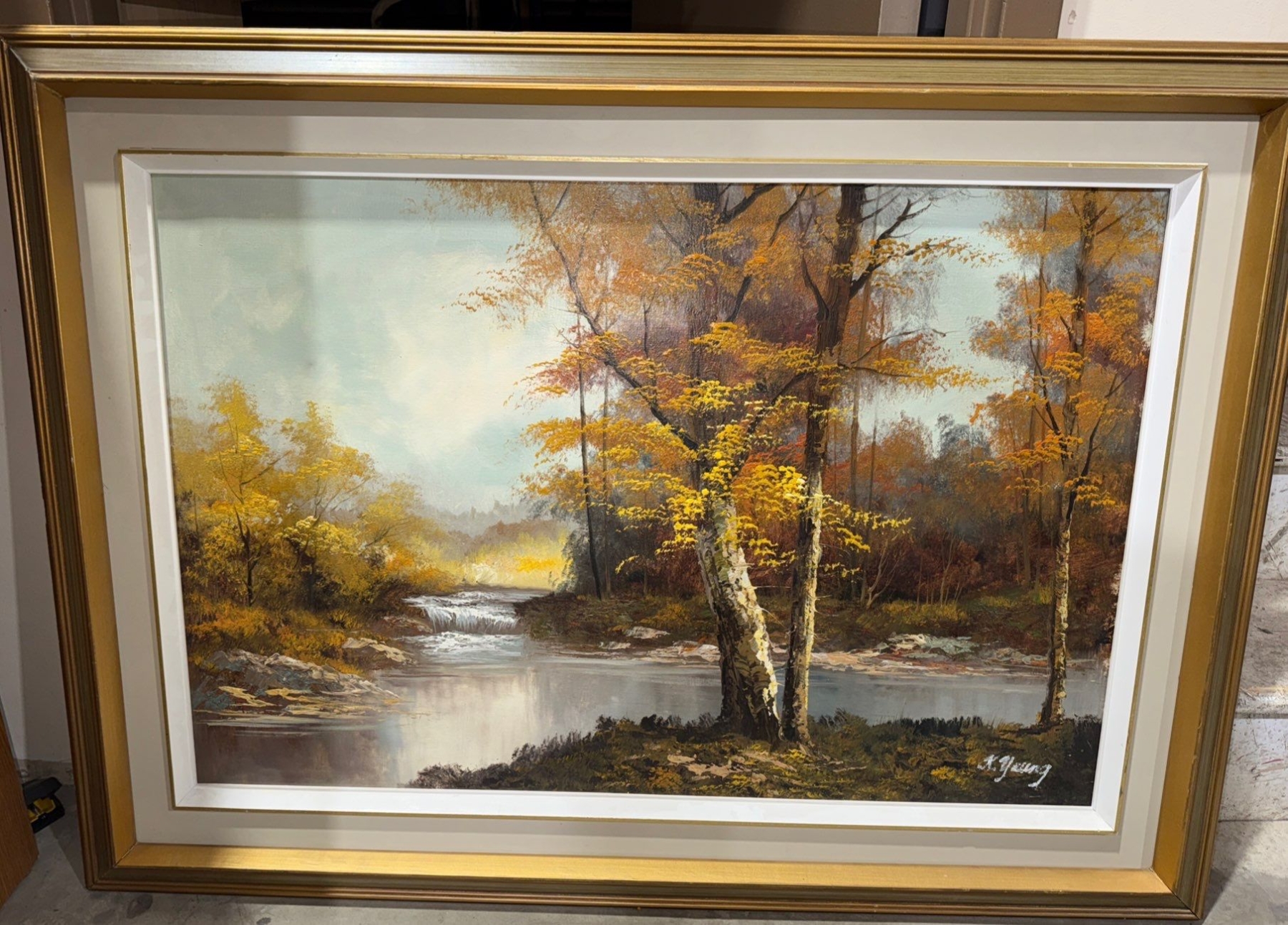 Original Oil Painting-Autumn Landscape w/Trees & River signed by K.Yeung 45x32"tall