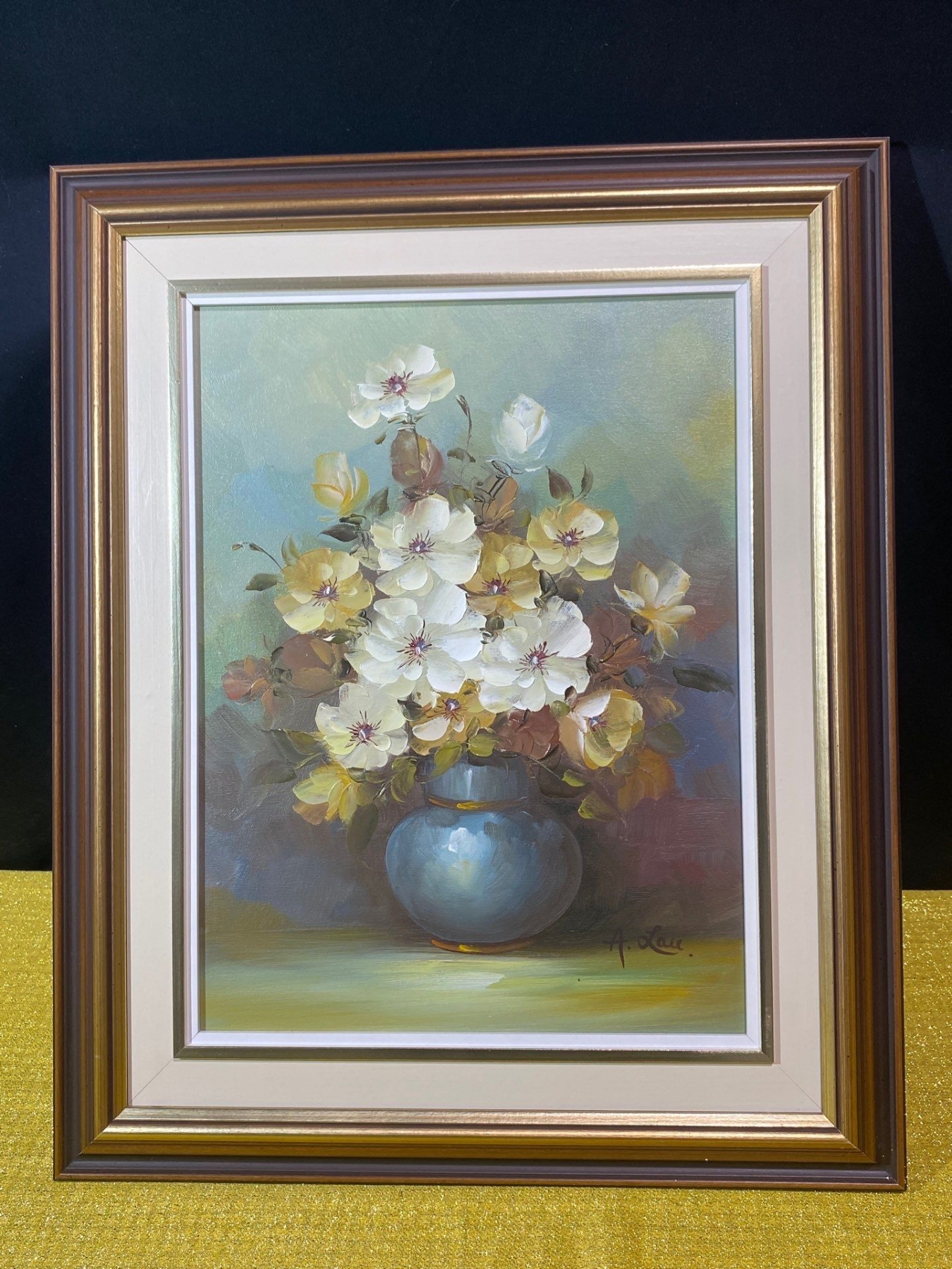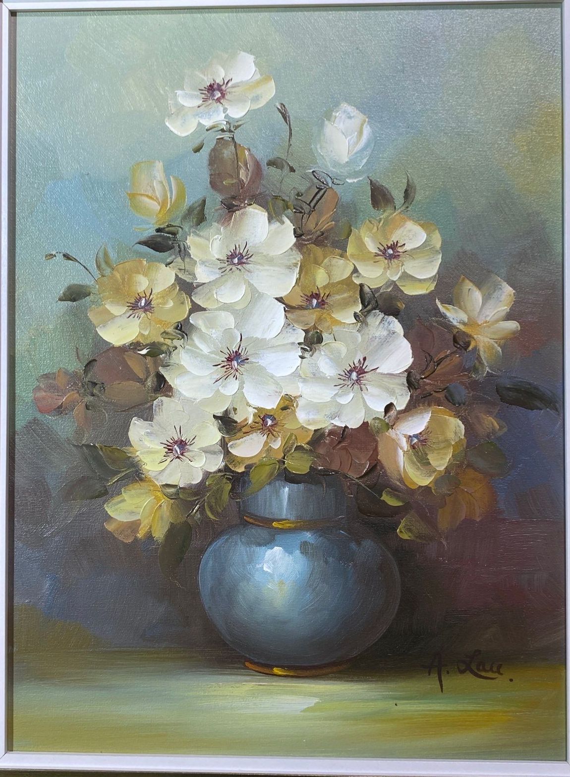 The composition celebrates the elegance and vitality of the blossoms, creating a striking and dynamic still-life. Perfect for collectors of fine art or admirers of timeless, decorative floral paintings.