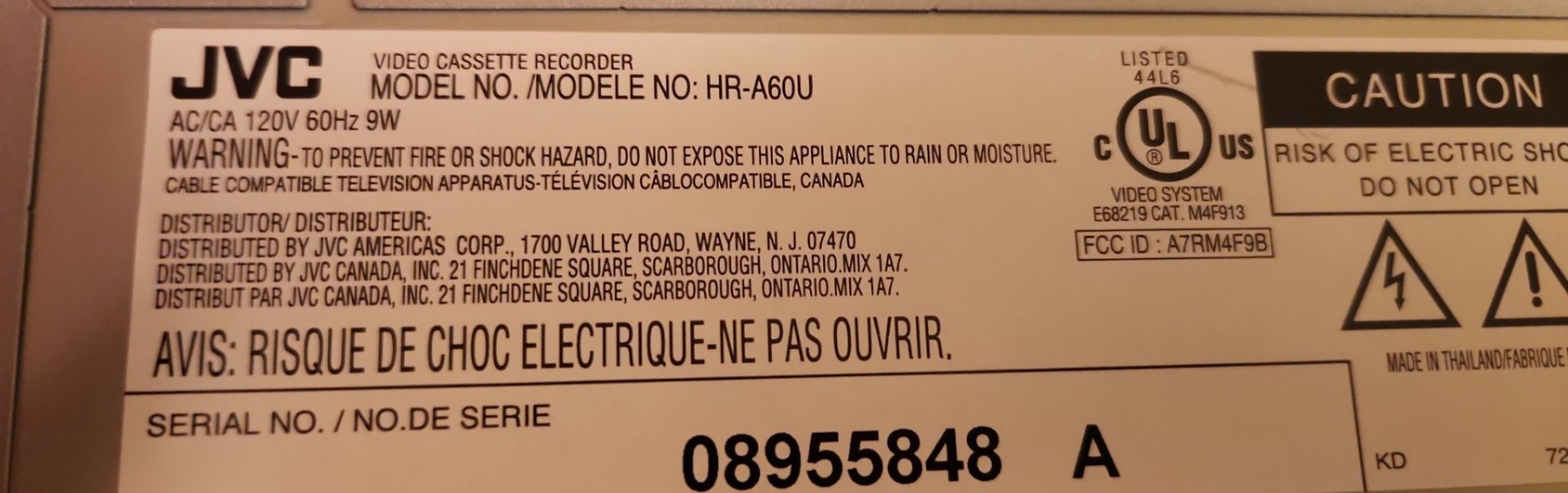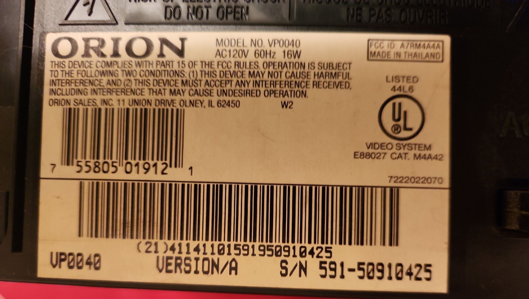 Orion VHS Player Model VP0040 and JVC VHS Model HR-A6OU