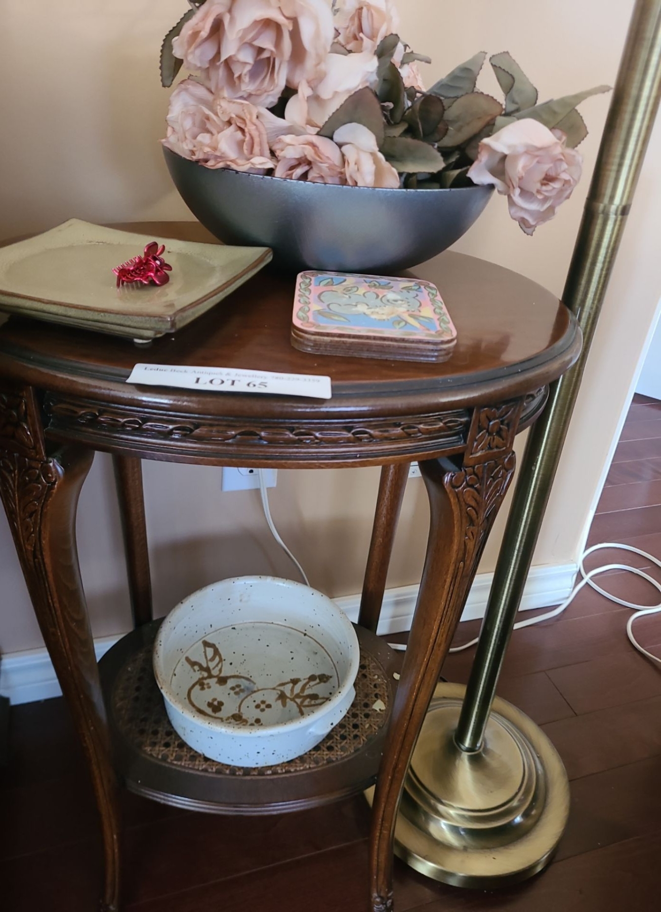 Ornate Oval Side Table 18 w 25 1/2 h, Floor Lamp 61 h, Bowls, Artificial Flowers & more