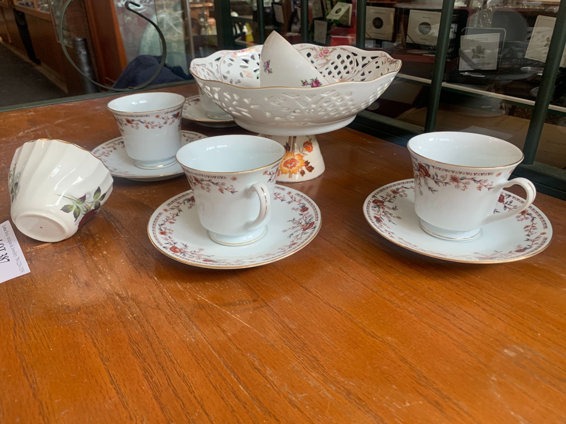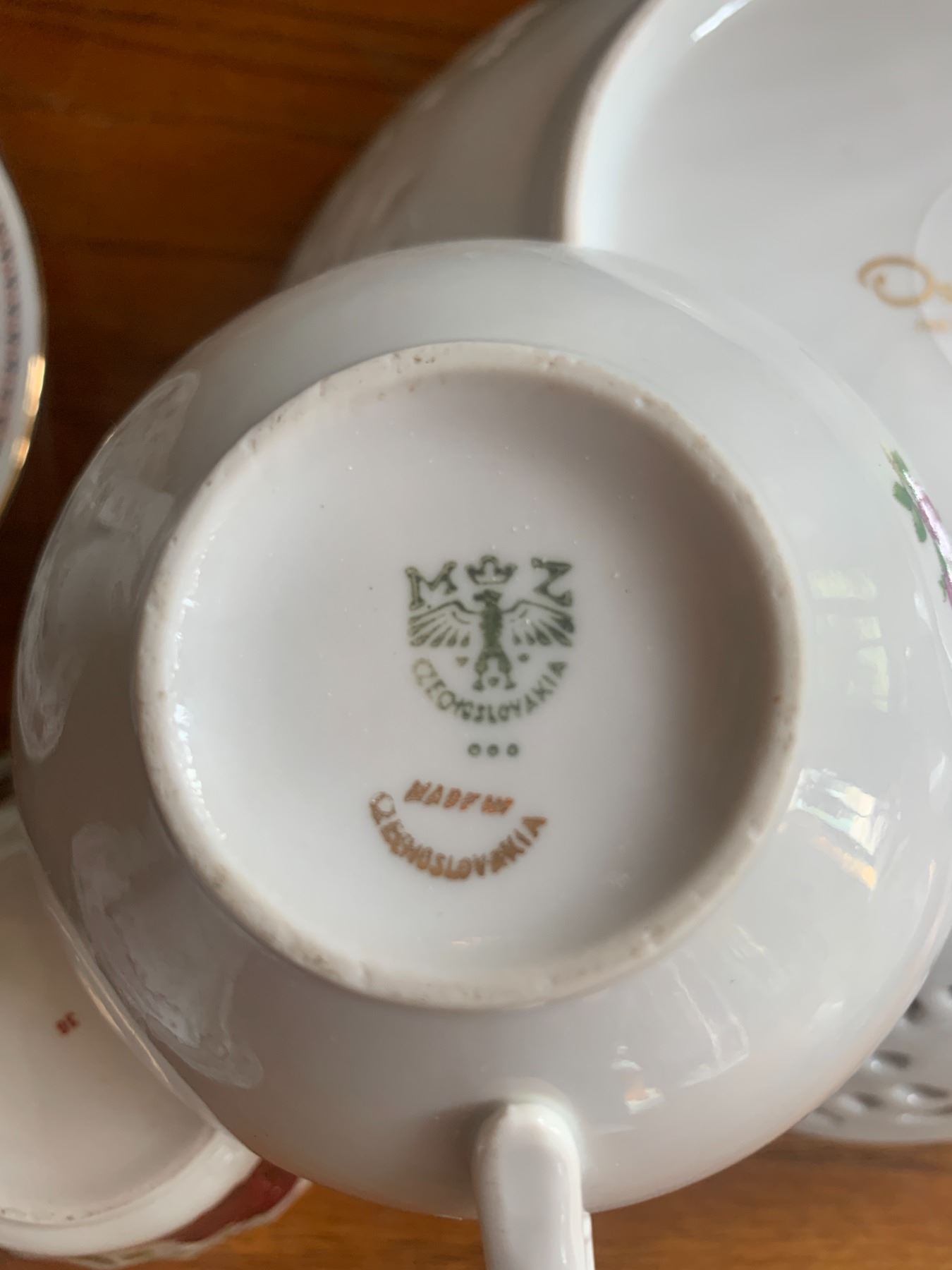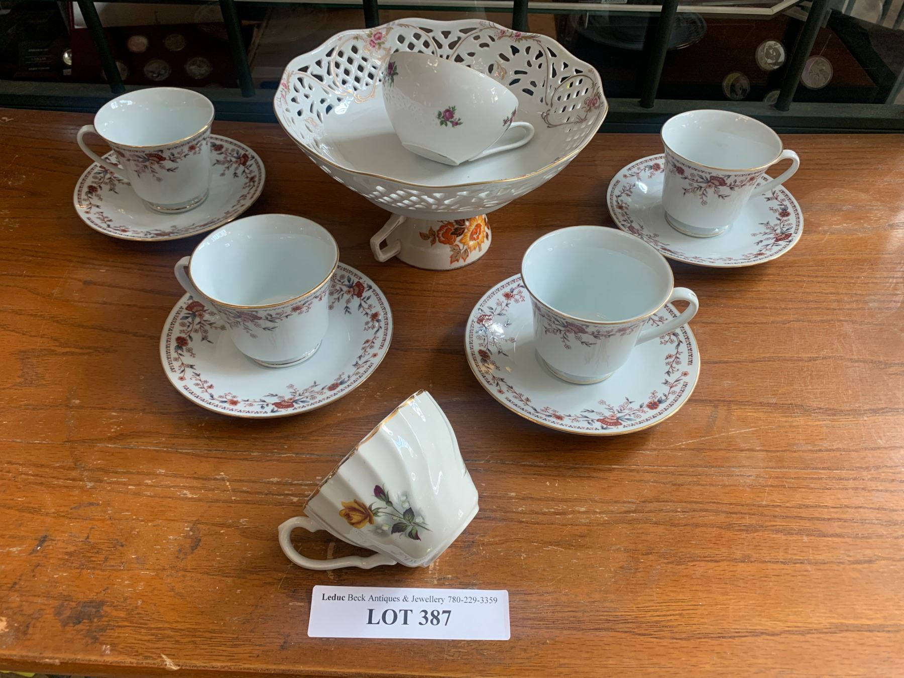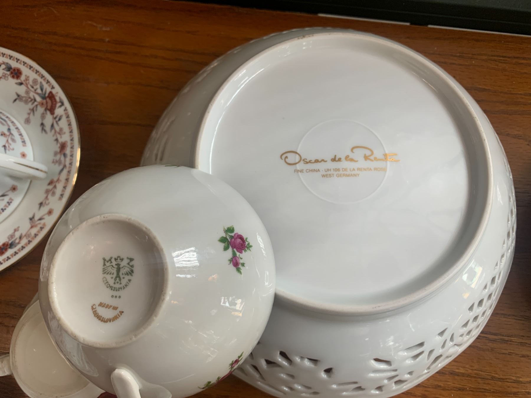 Oscar de la Renta Fine China Porcelain Serving Bowl UH 106 Rose West Germany & Asst Teacups/Saucers