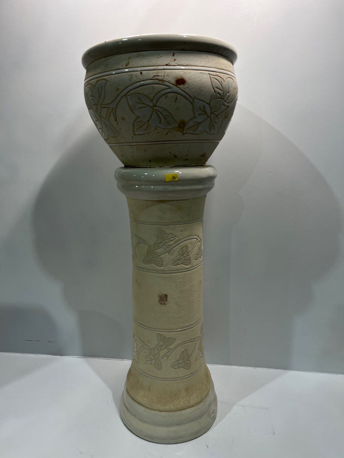 Outdoor Ceramic Plant Stand with Ceramic Pot - Mediterranean Themed 30H x 12W