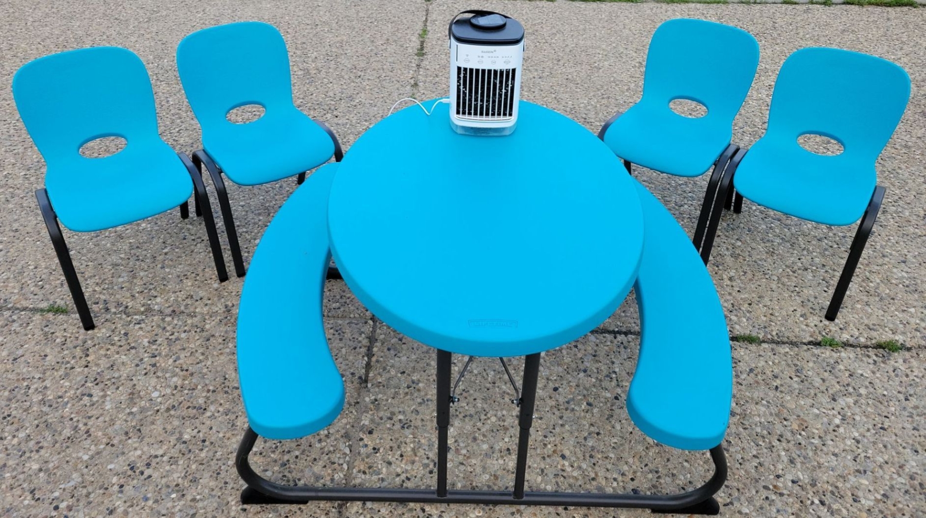 Outdoor Children's Picnic Table w/ 4 Chairs & Desktop Fan