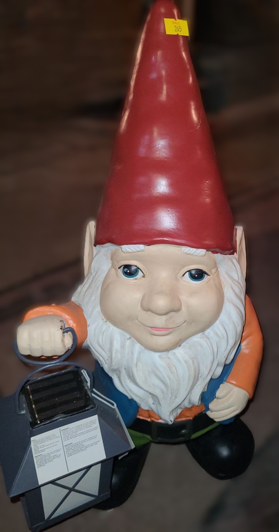 Outdoor Garden Gnome w/ Solar Lantern 21 T (New)