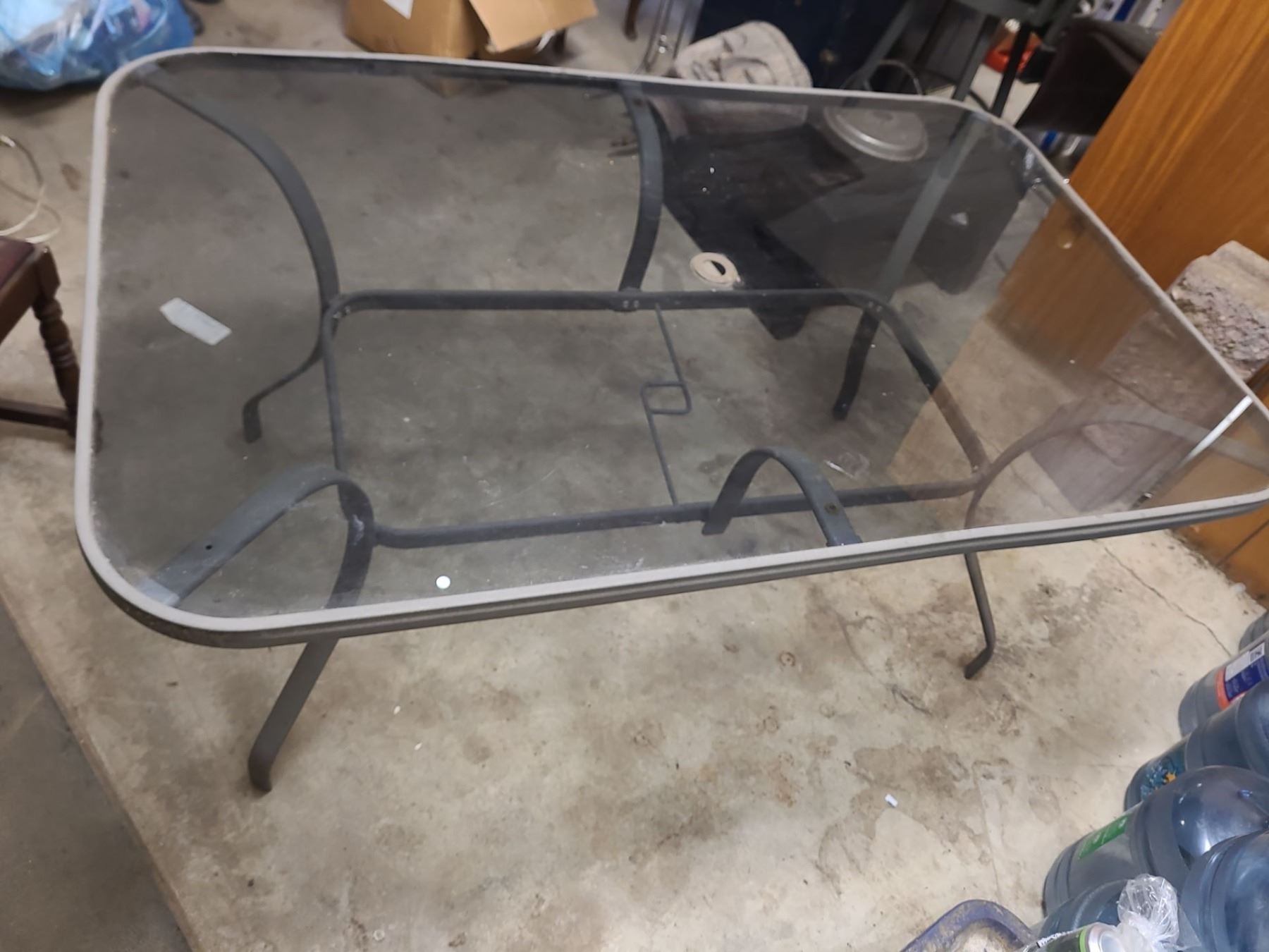 Outdoor Glass Top and Metal Base Patio Table (60 L, 38 W, 28 H)