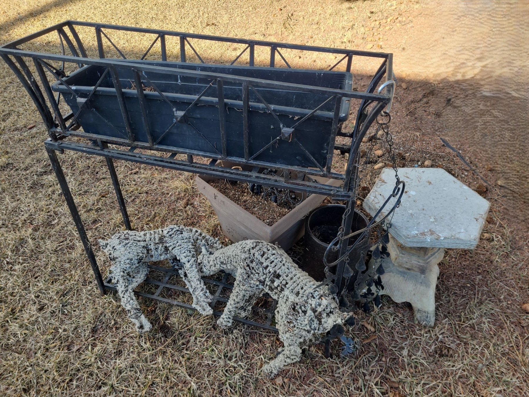 Outdoor Metal Plant Stand 30 W, 9 D, 30 T , Deer 20 W, 13 T and Other Decor