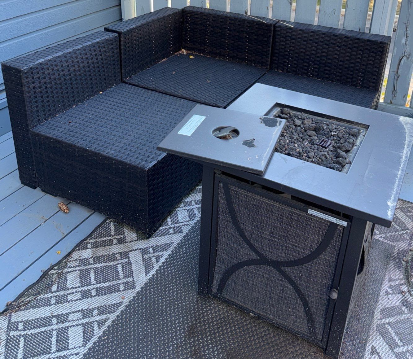 Outdoor Propane Gas Fire Table w/Sectional Wicker Patio Furniture