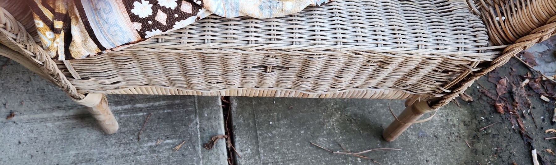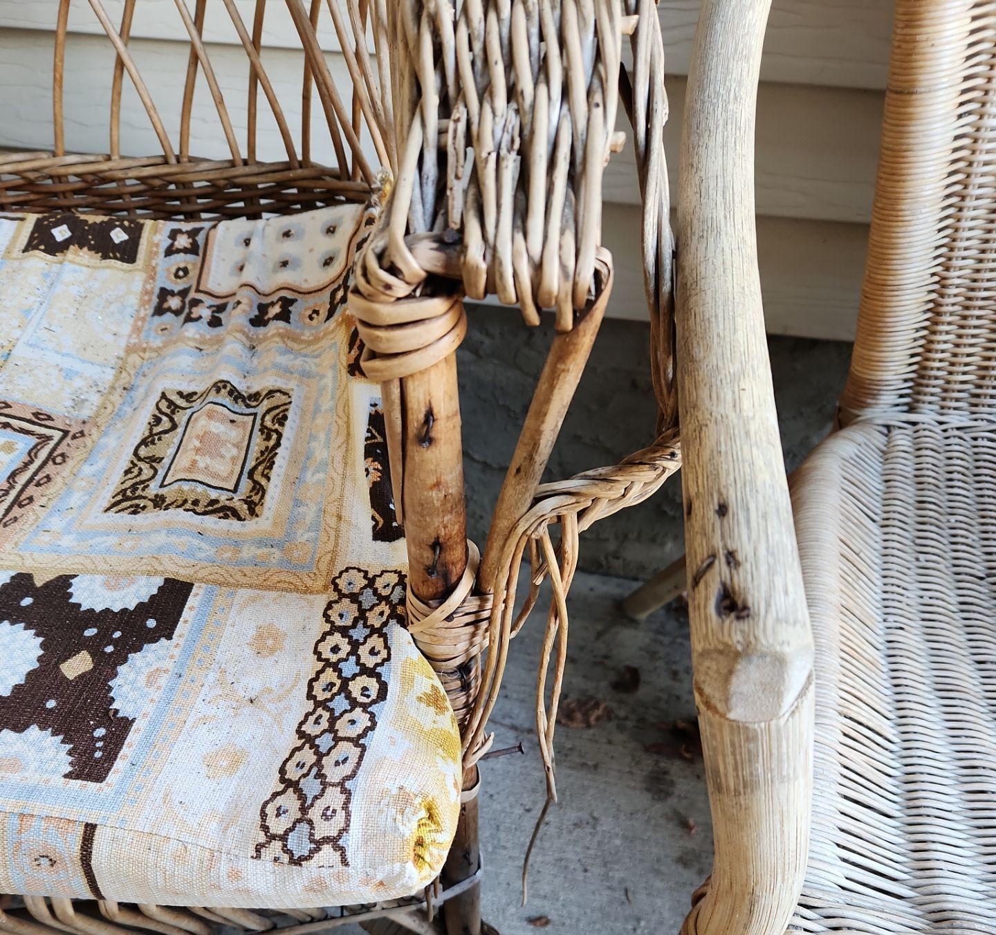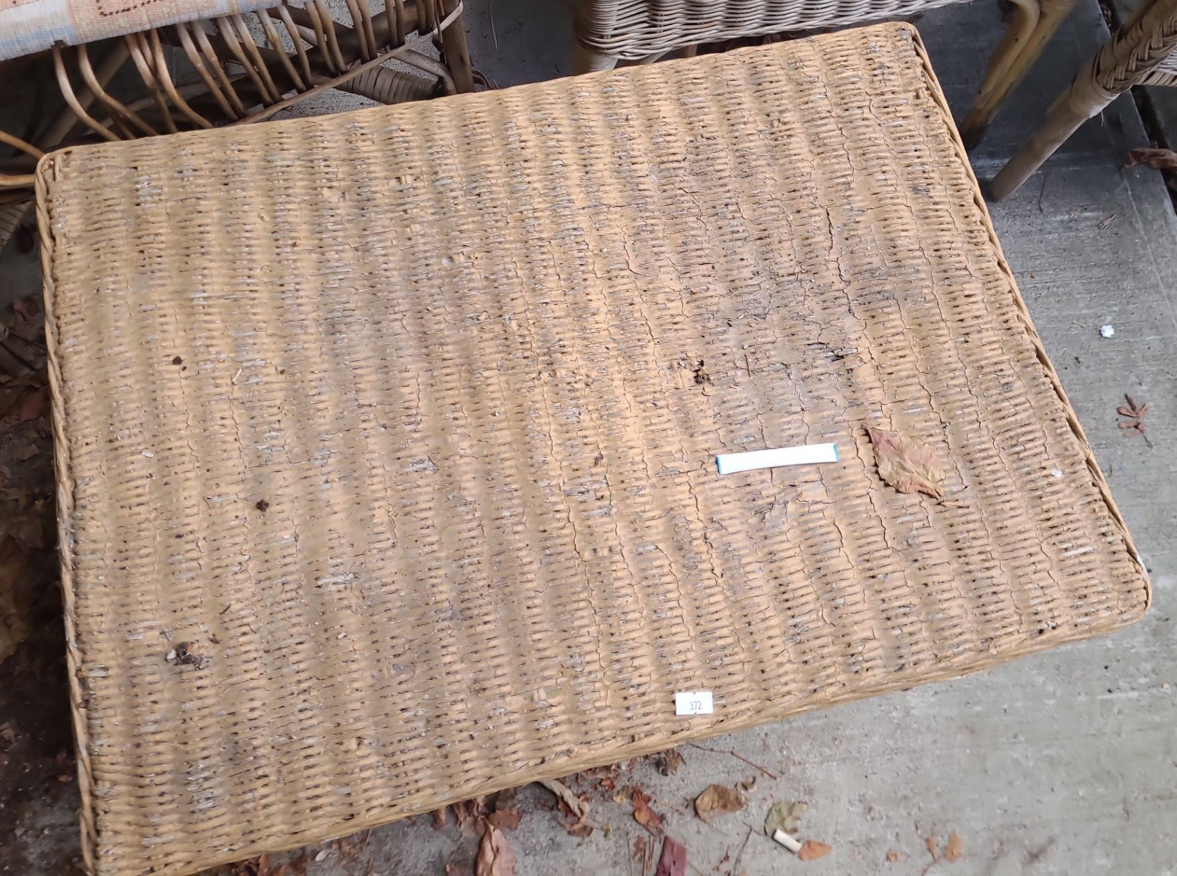 Outdoor Wicker Table 25 W, 18 D, 18 T and Chairs- Tallest: 26 W, 20 D, 40 T