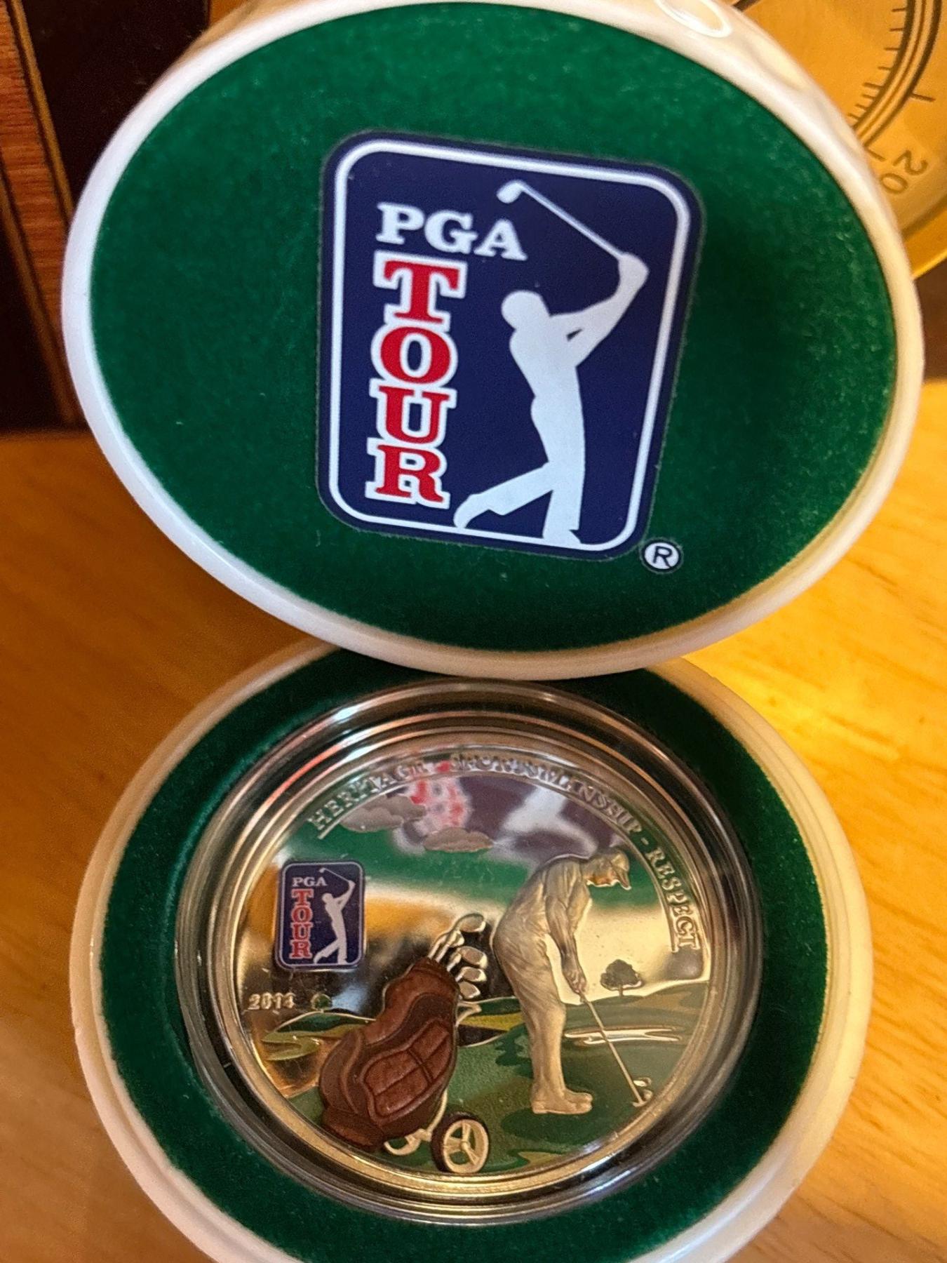 PGA TOUR GOLF BAG Official License Silver Coin 5$ Cook Islands 2014