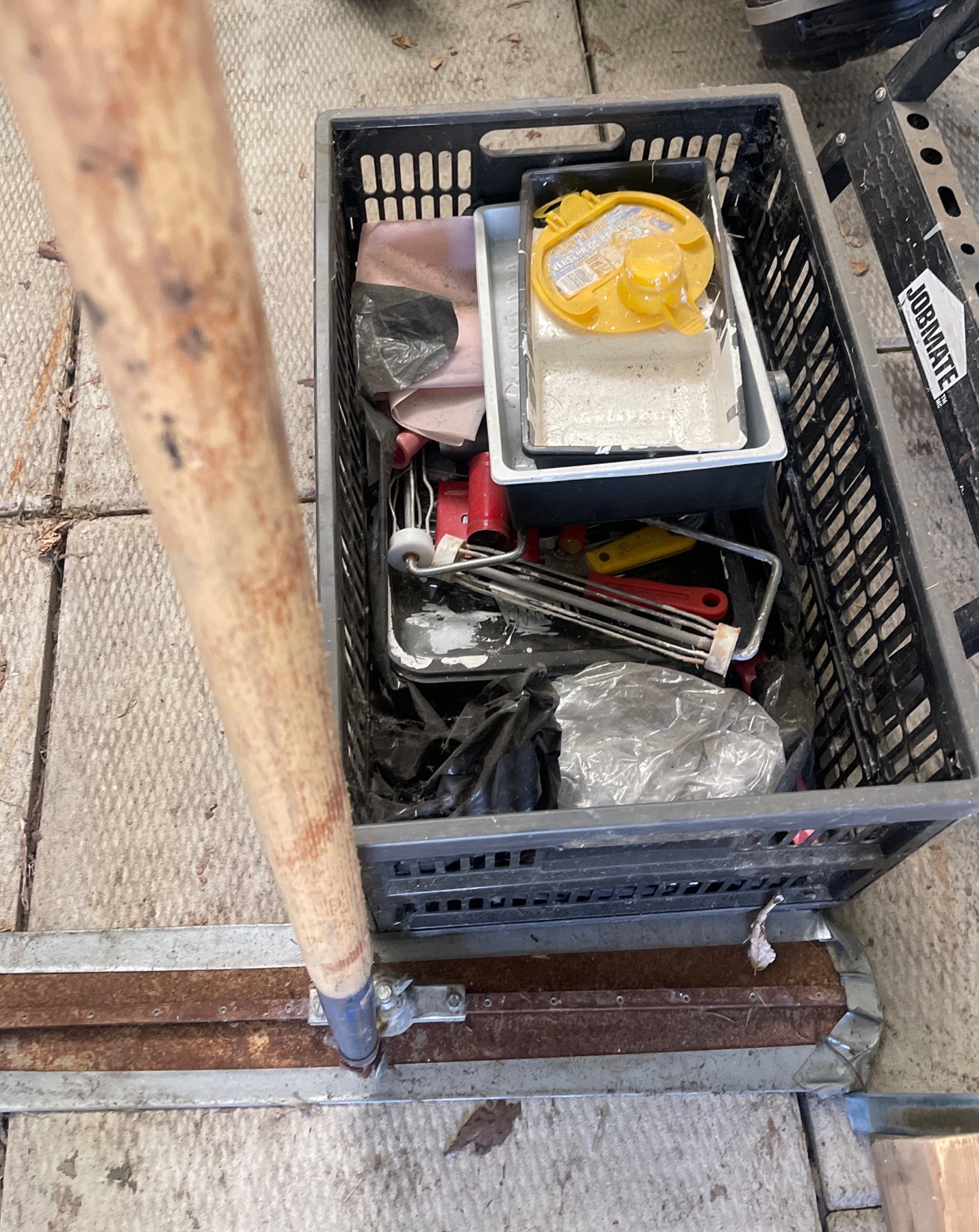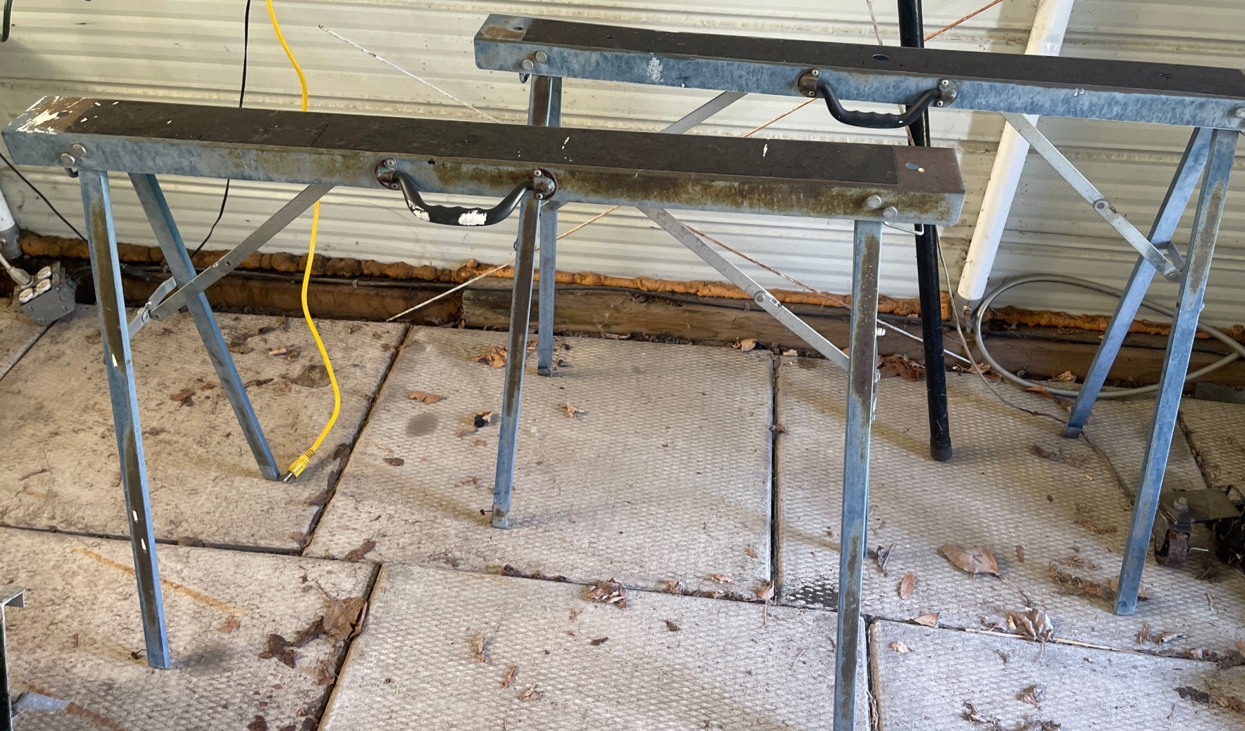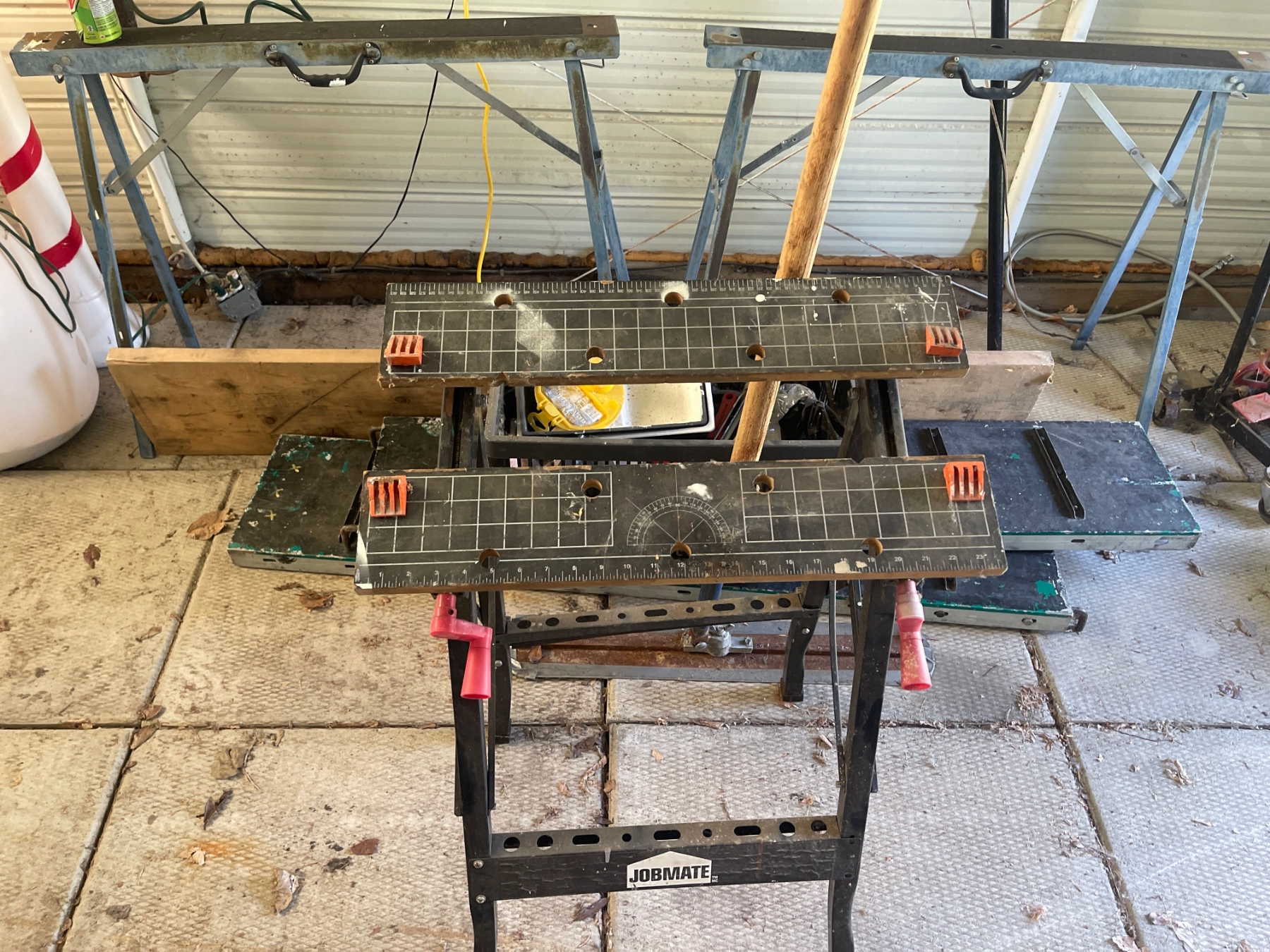 Painting Supplies & Scaffold w/Horses & Jobmate Table