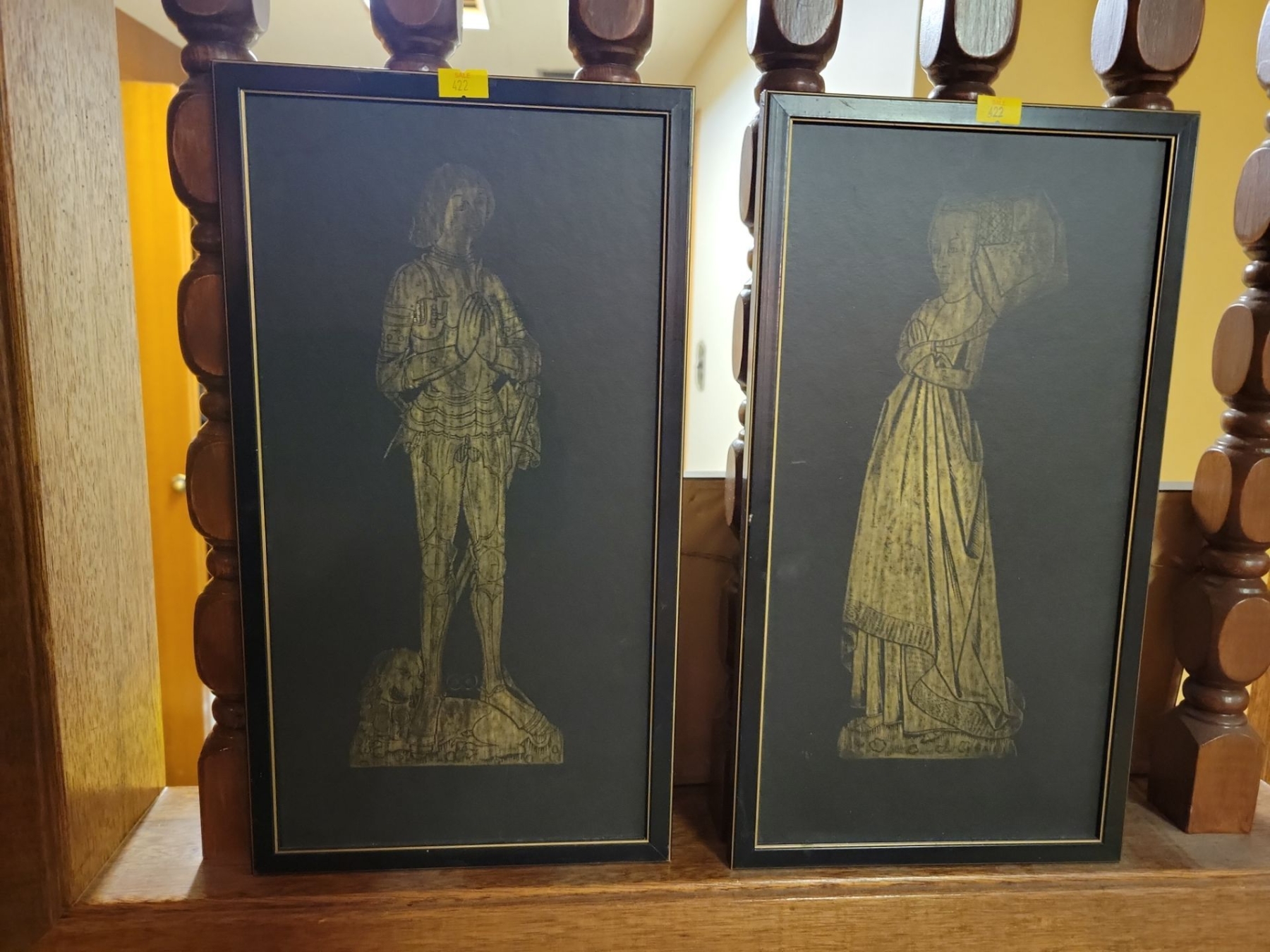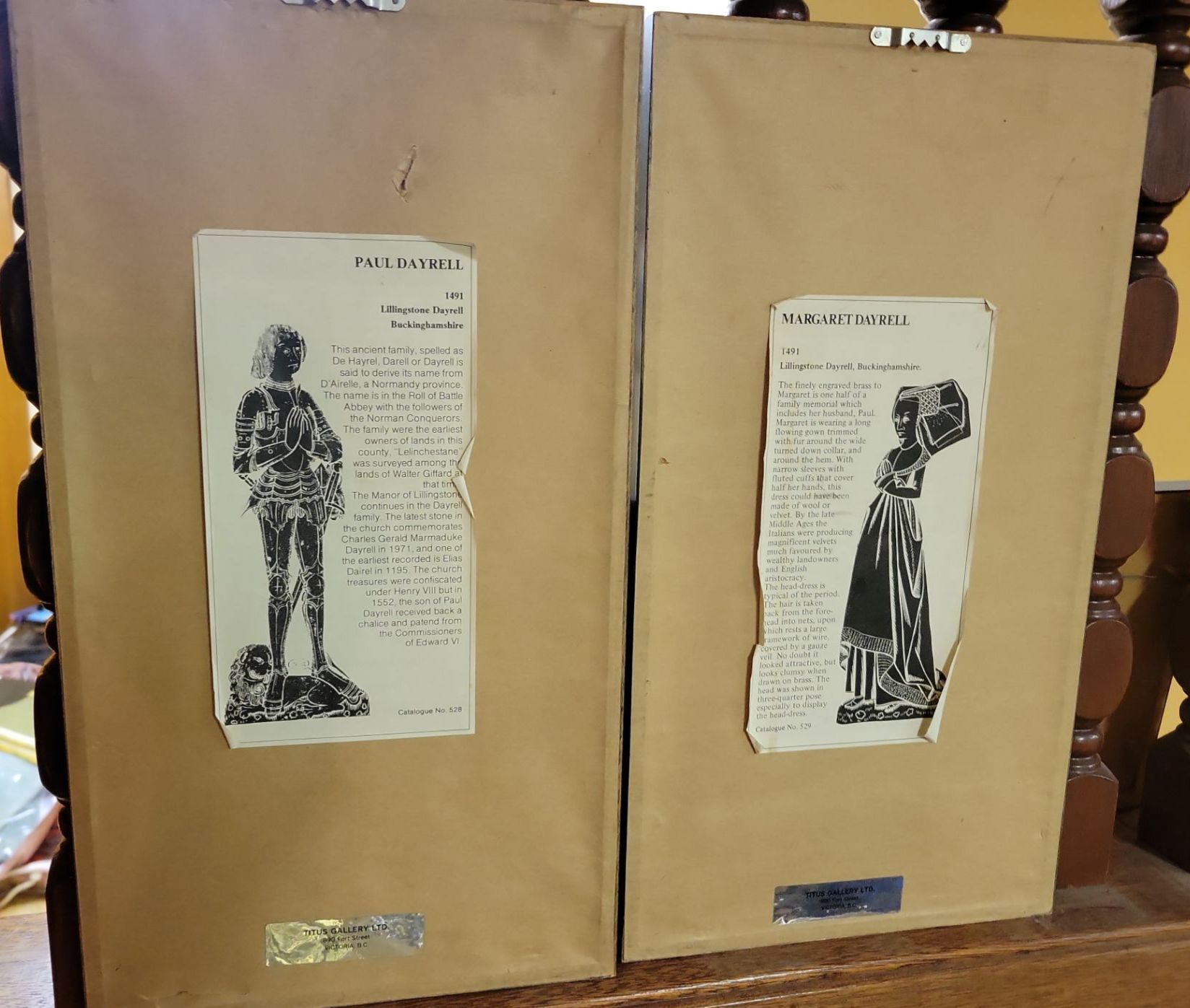Pair Od Brass Rubbings Depicting Lady Margarot Francs Peyton w/ Partner Thomas Peyton