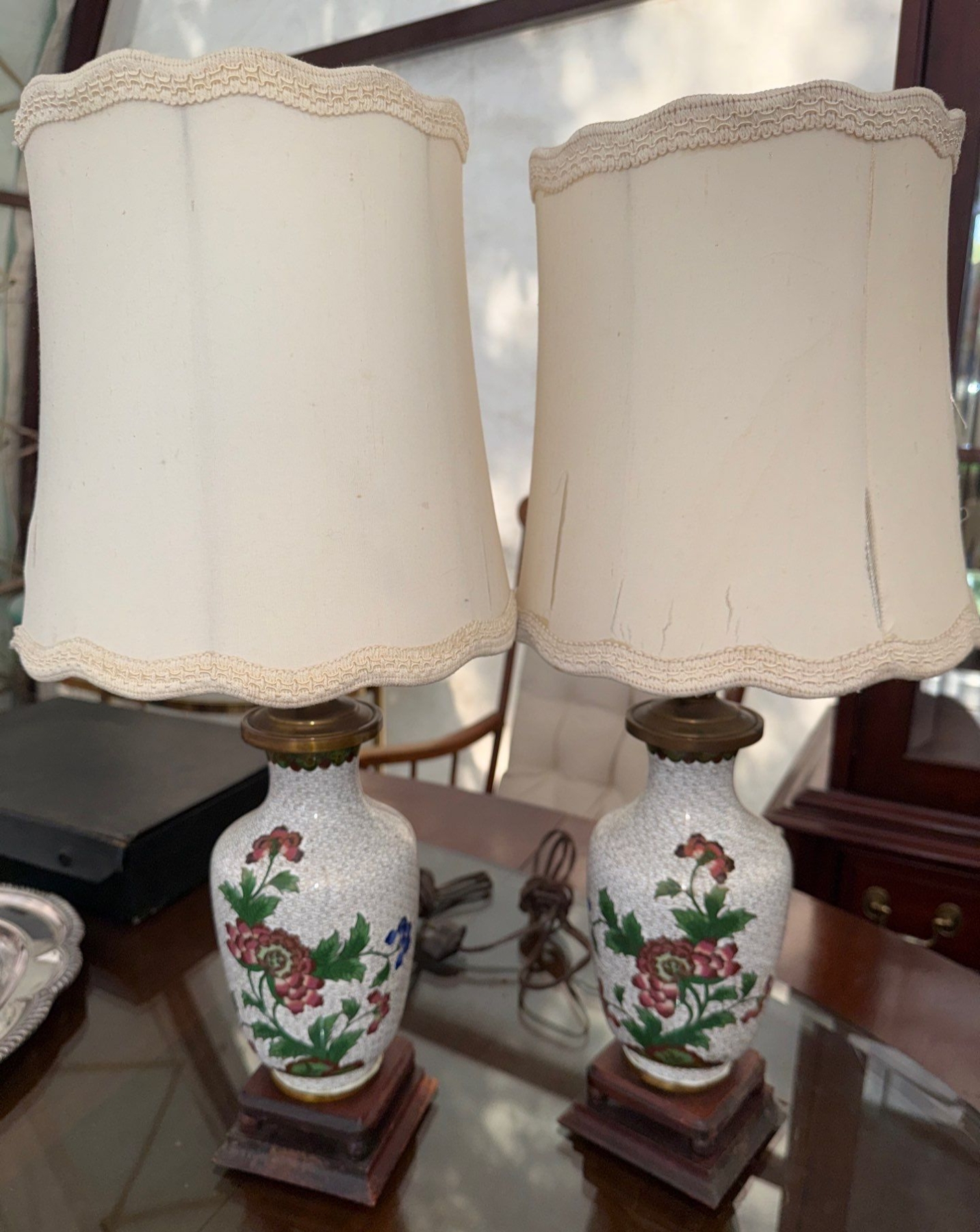 Pair Of Beautiful Antique Lamps 13"tall