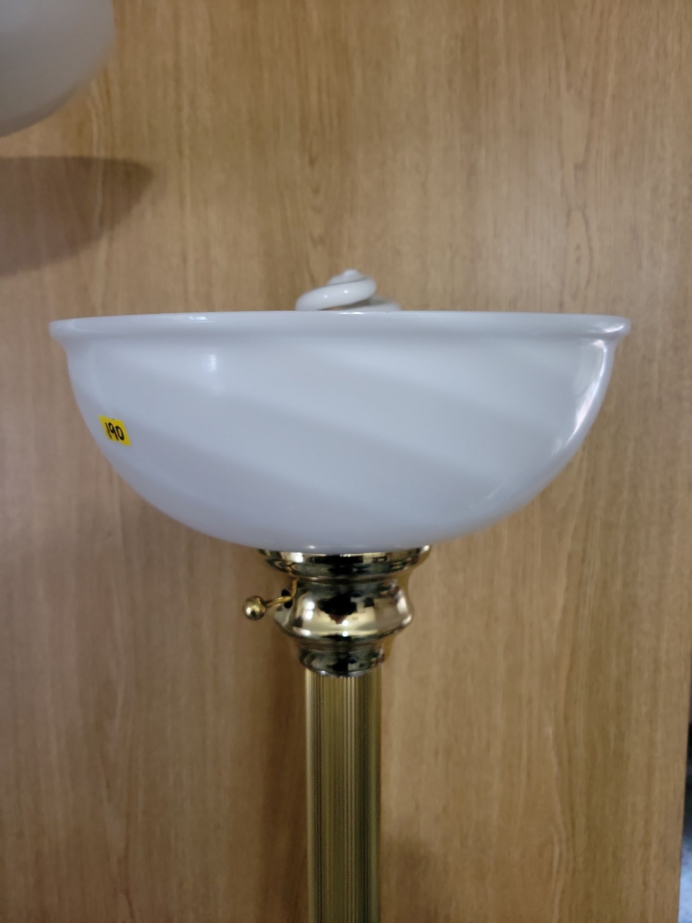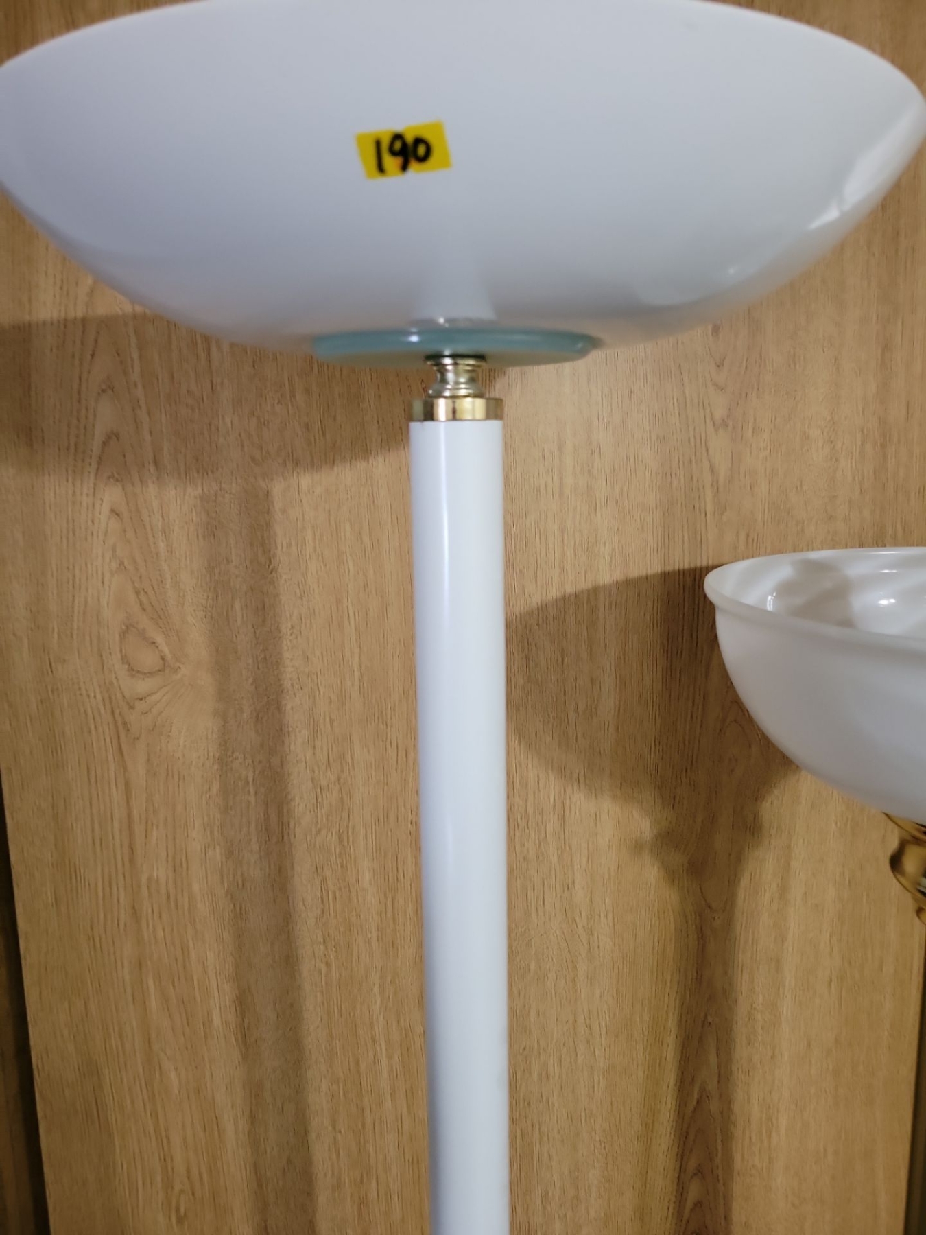Pair Of Floor Lamps - Brass w/ Glass Shade & White Aluminum 6ft Tall