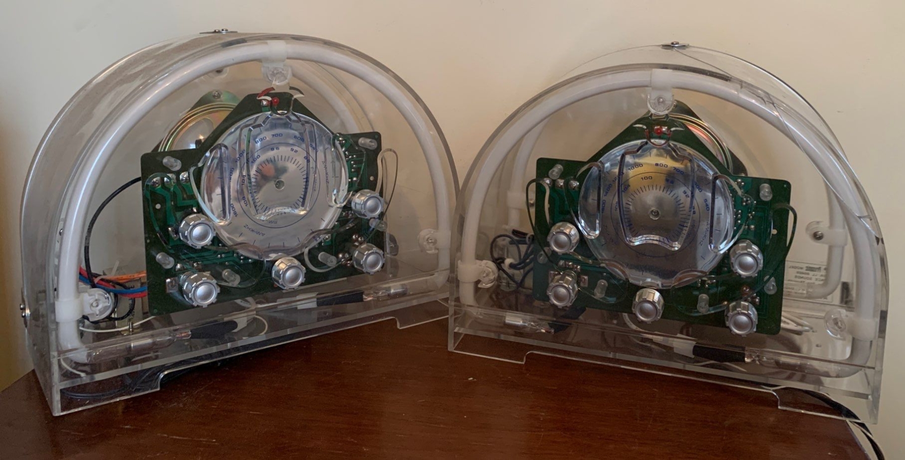 Pair Of Pro Sonic Space Sounds Neon See Threw Am/FM Radio Mp.PGR-131 (1 Is Slightly Cracked)
