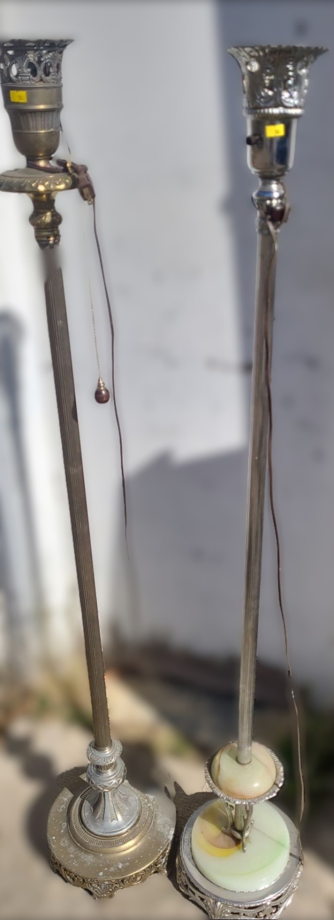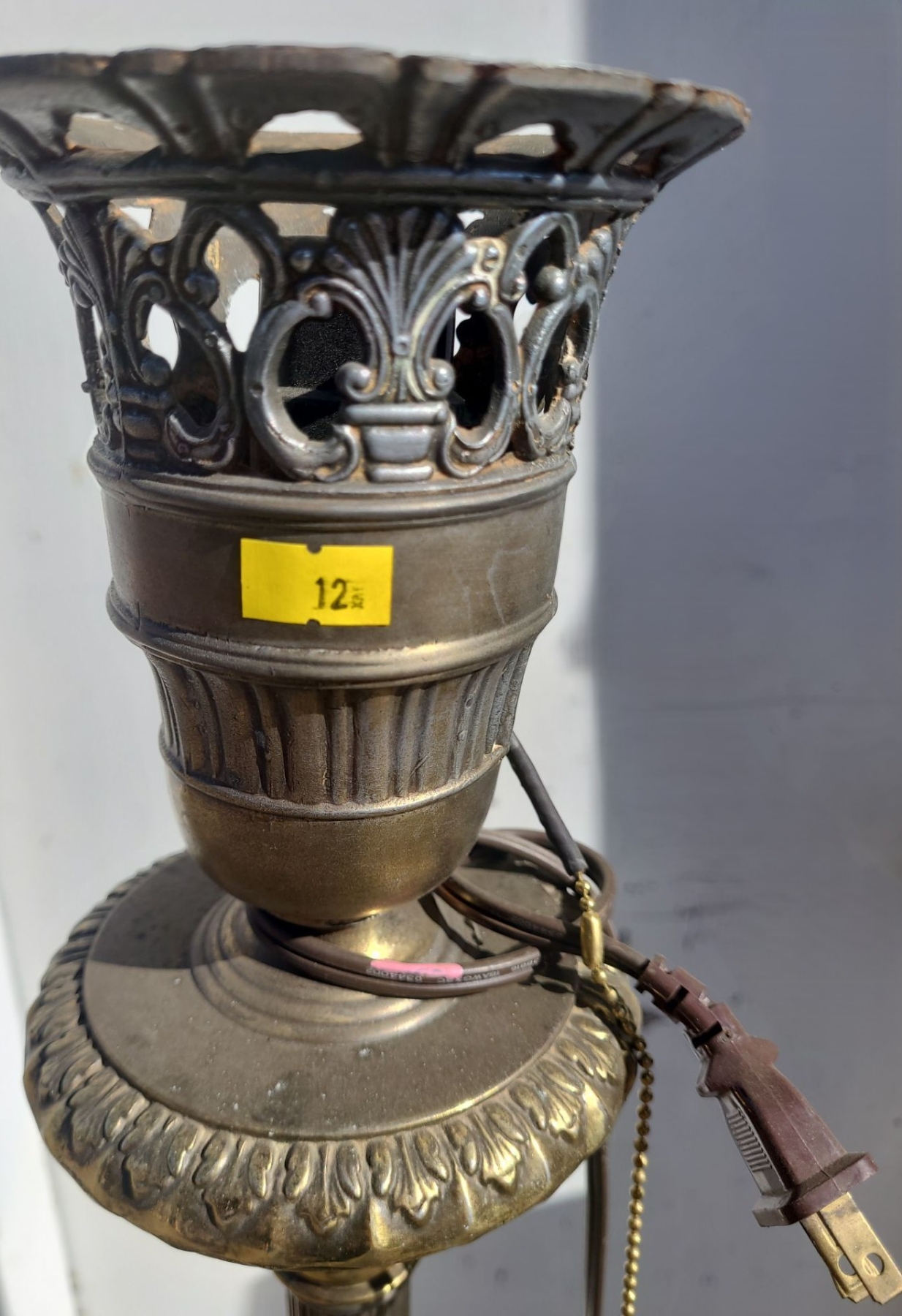 Pair of Antique Lamps: 12  Diameter Base, 60 T and Marble Detail Lamp 10  Diameter Base 59.5 T