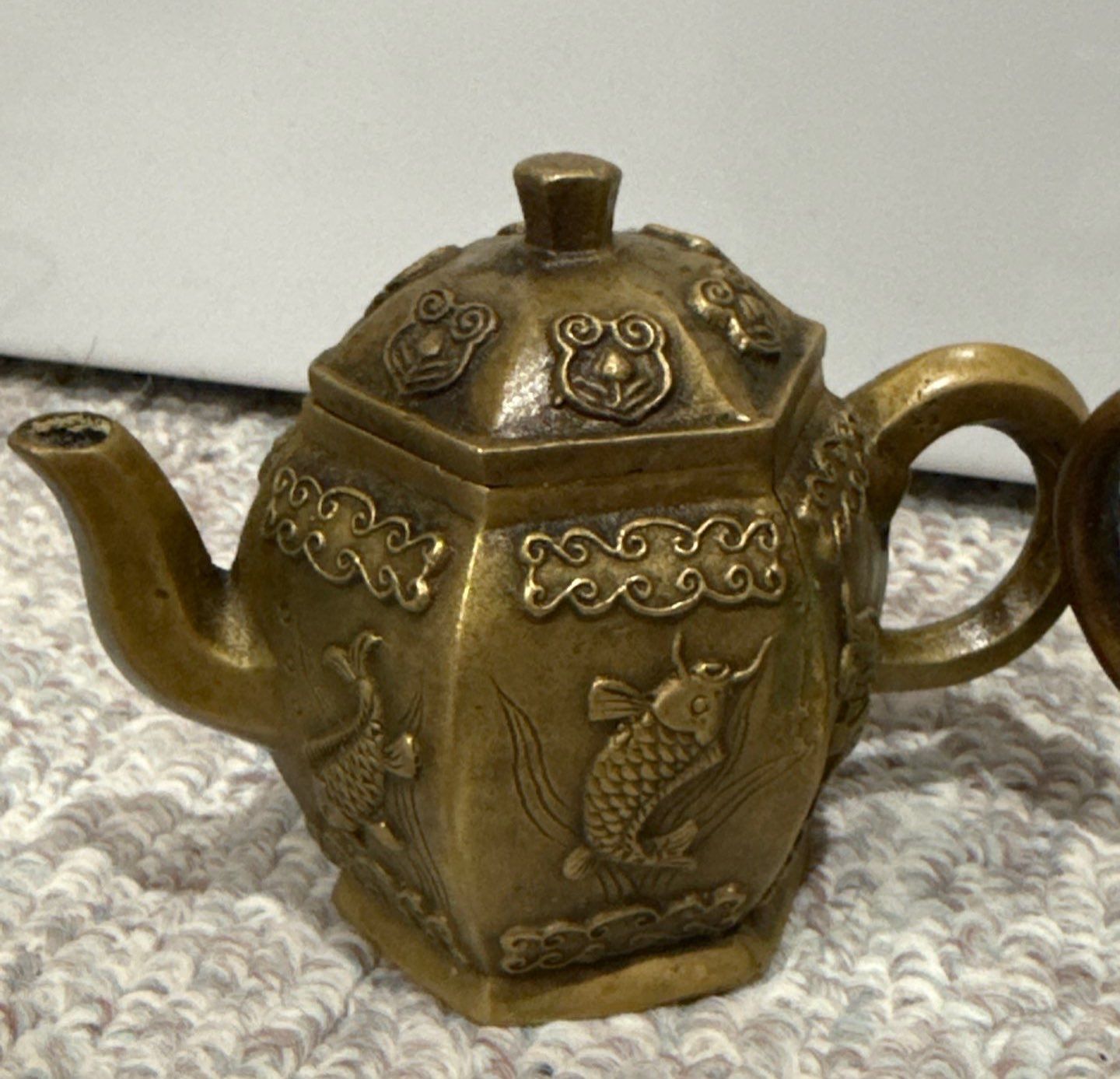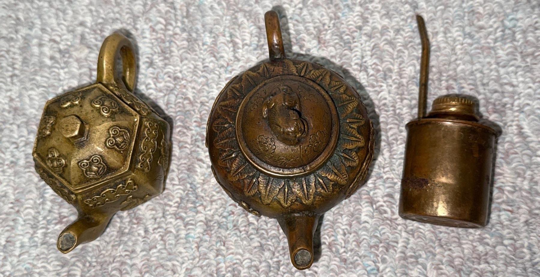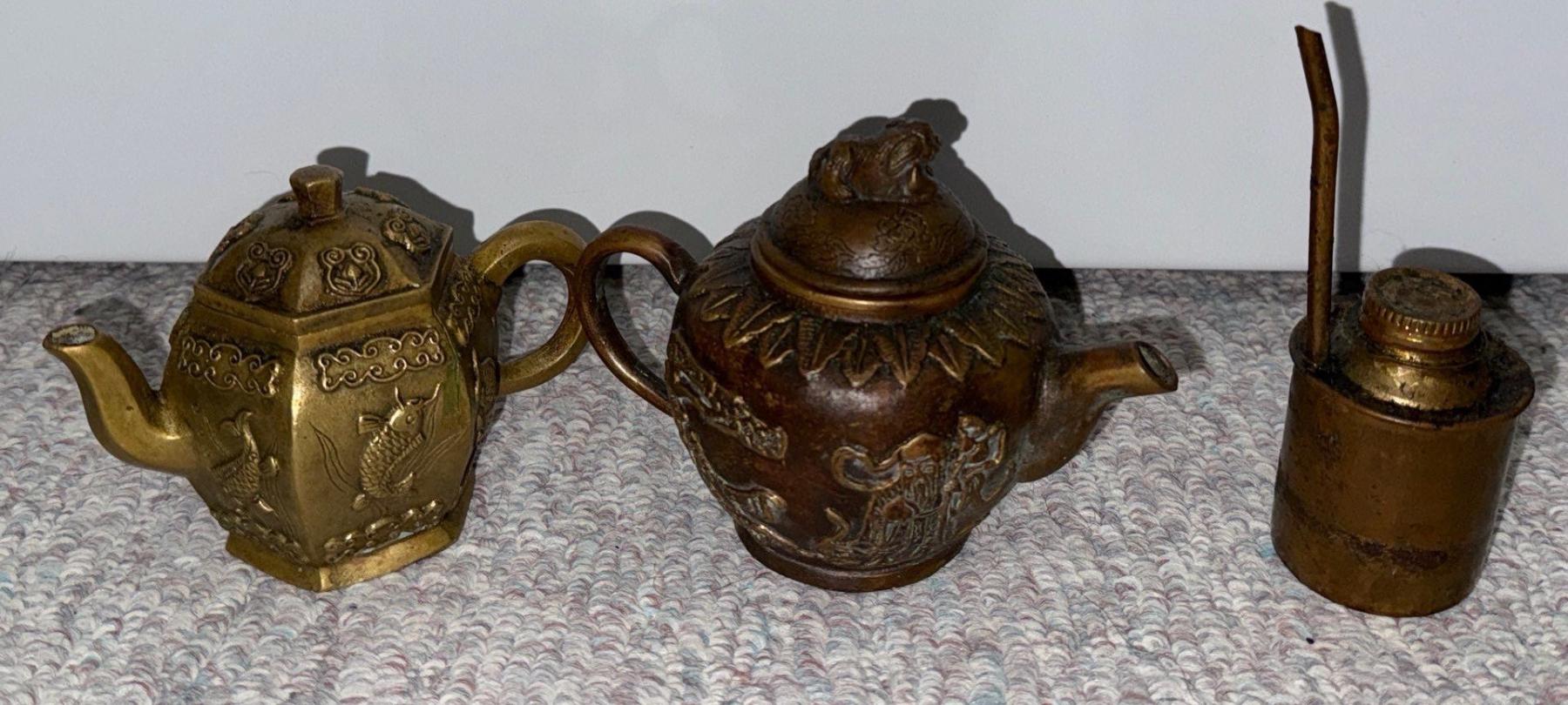 Pair of Brass Antique Decorative Chinese Teapots (5.5W) w/ Antique Brass Lighter