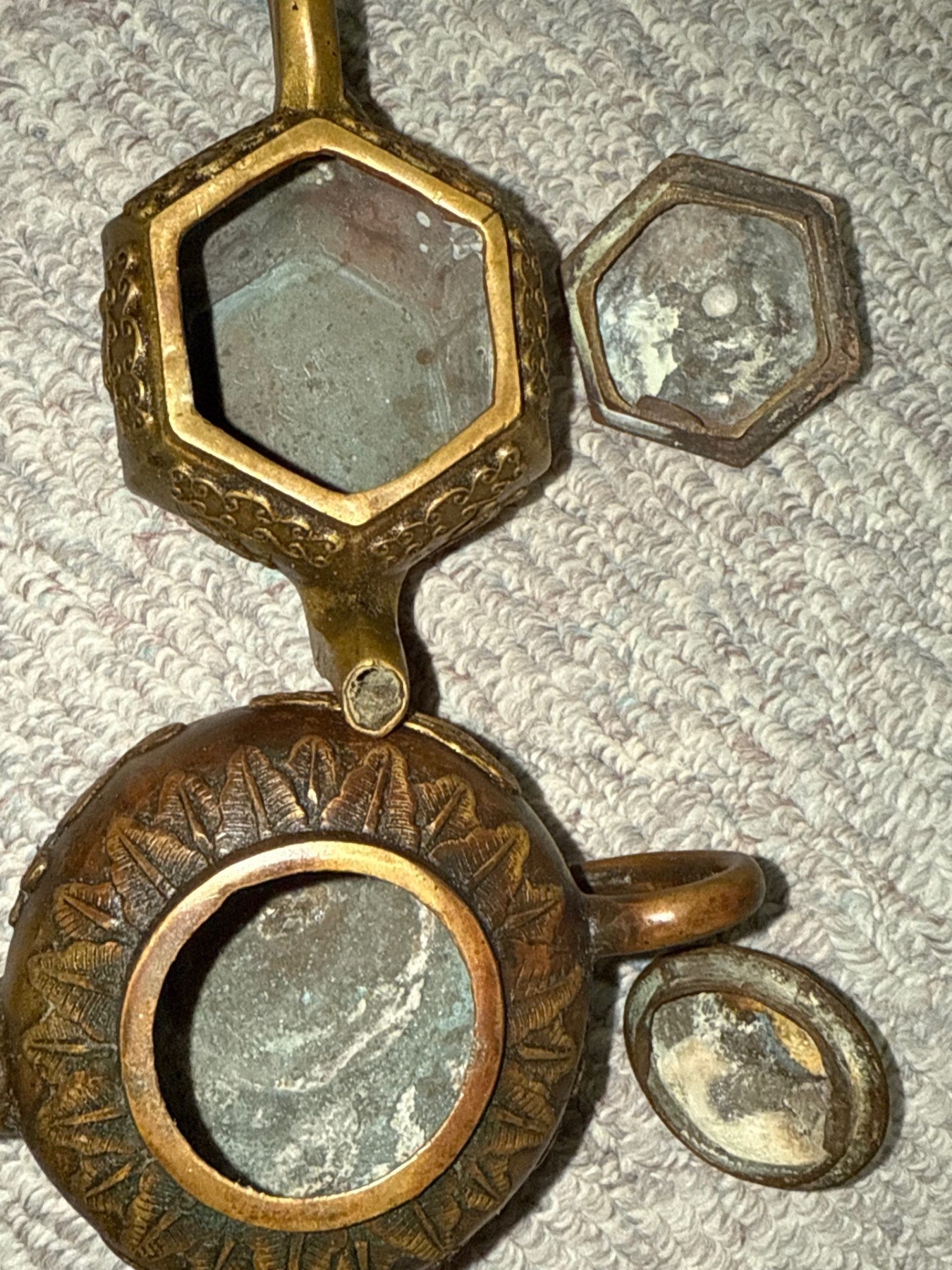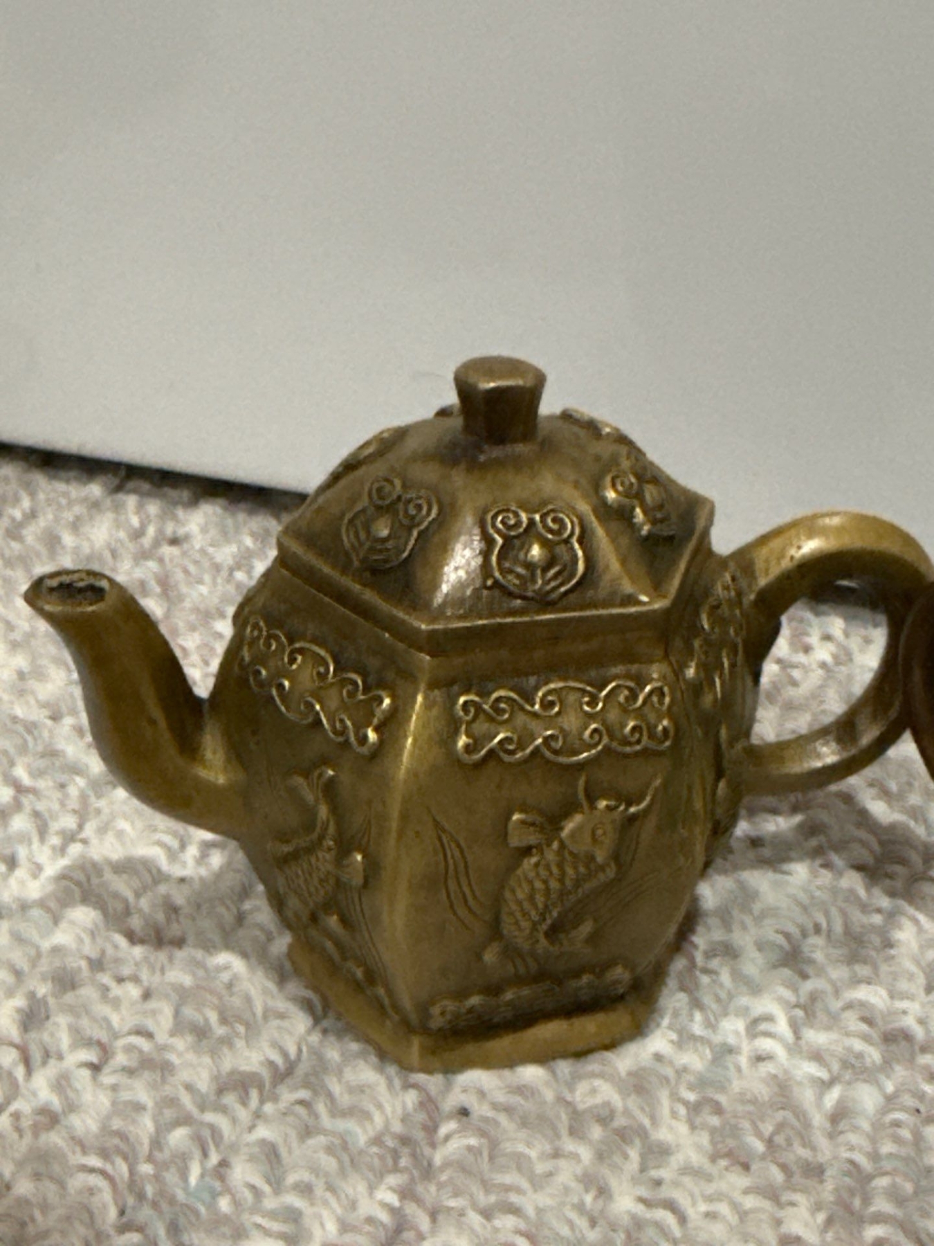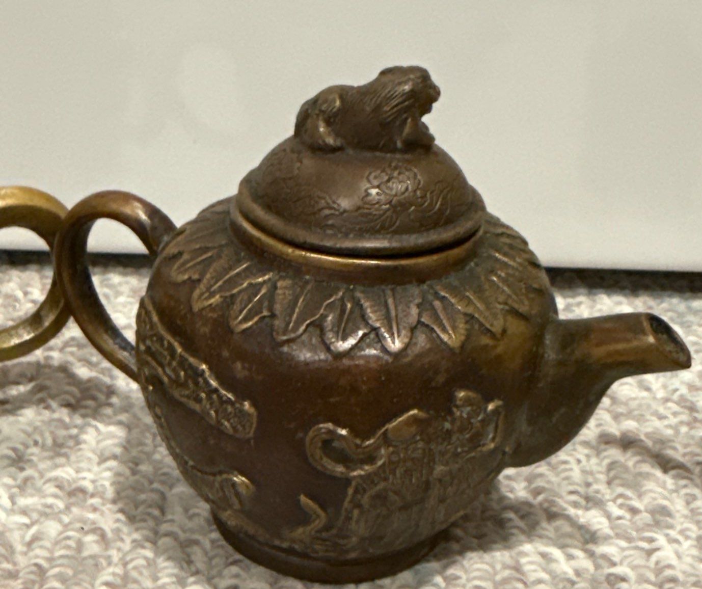 Pair of Brass Antique Decorative Chinese Teapots (5.5W) w/ Antique Brass Lighter