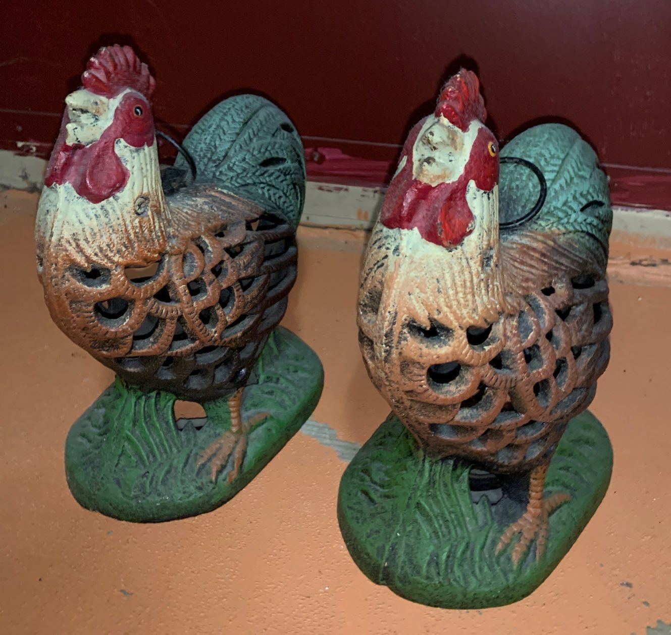 Pair of Cast Iron Chicken Candle Holders 8 L