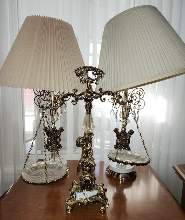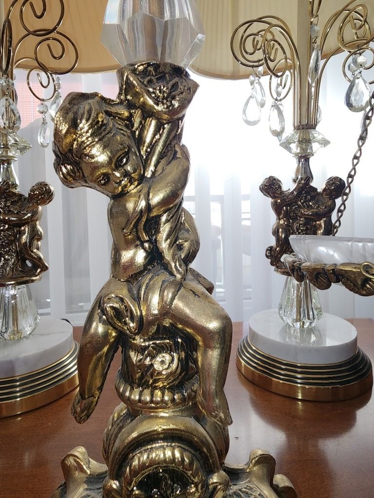 Pair of Cherub Antique Lamps with glass & marble base & Antique Scale
