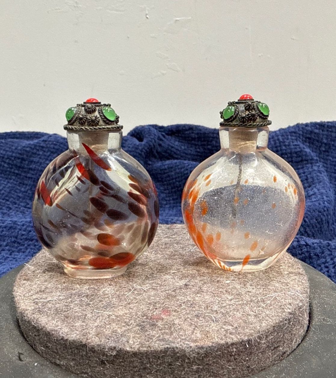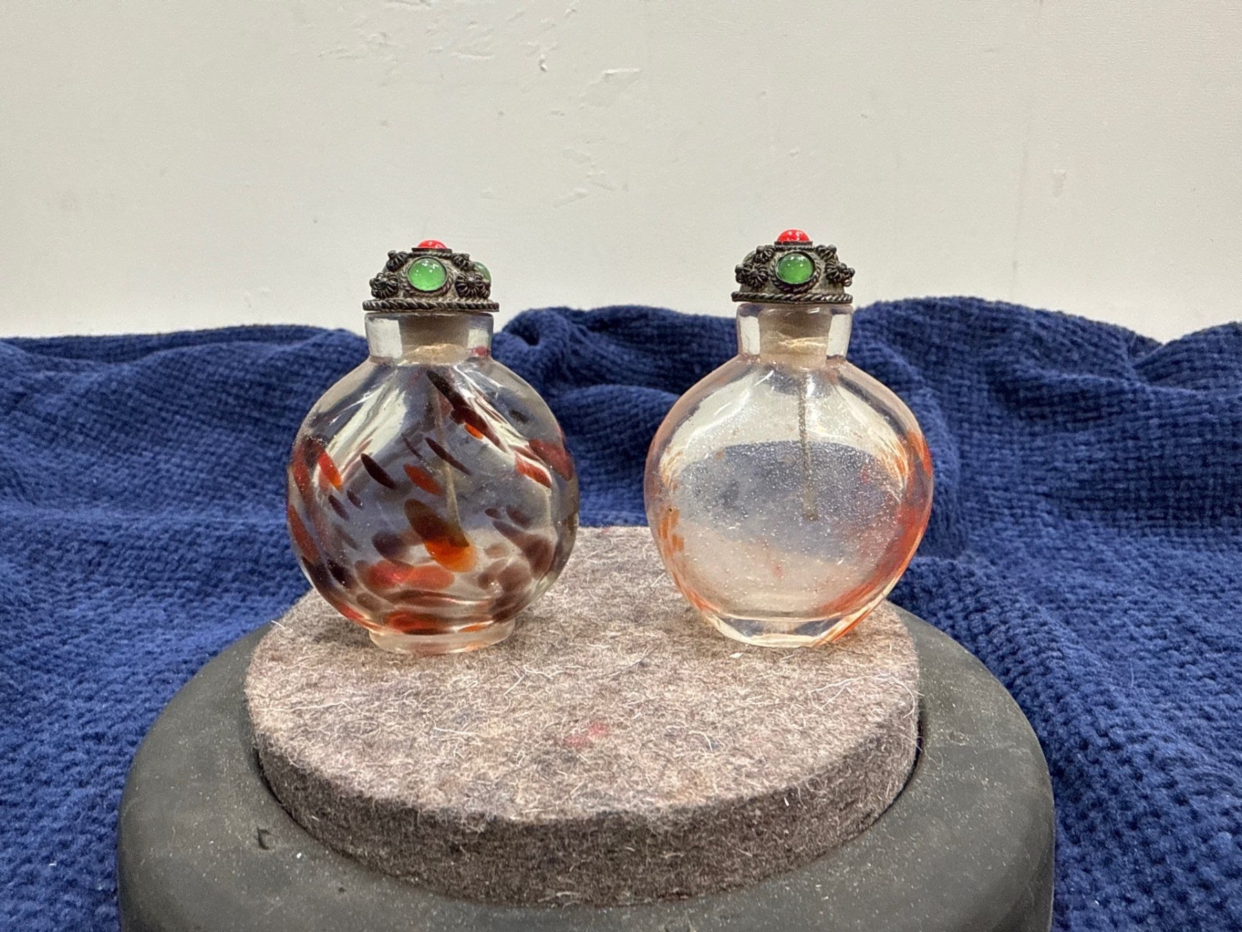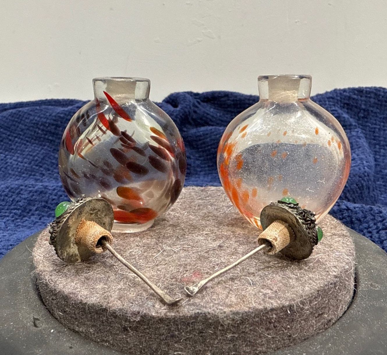 Pair of Clear Glass Snuff Bottles with Spoons 2.5H