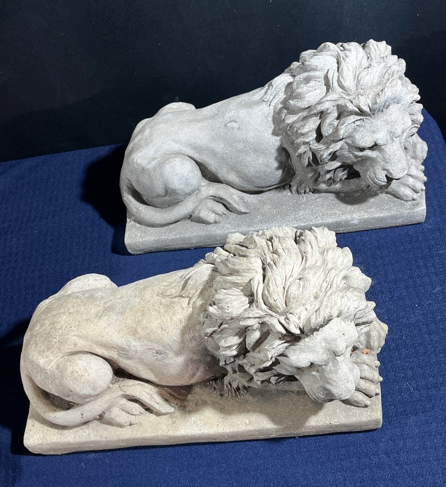 Pair of Concrete/Clay Lions 15Wx6Dx9H