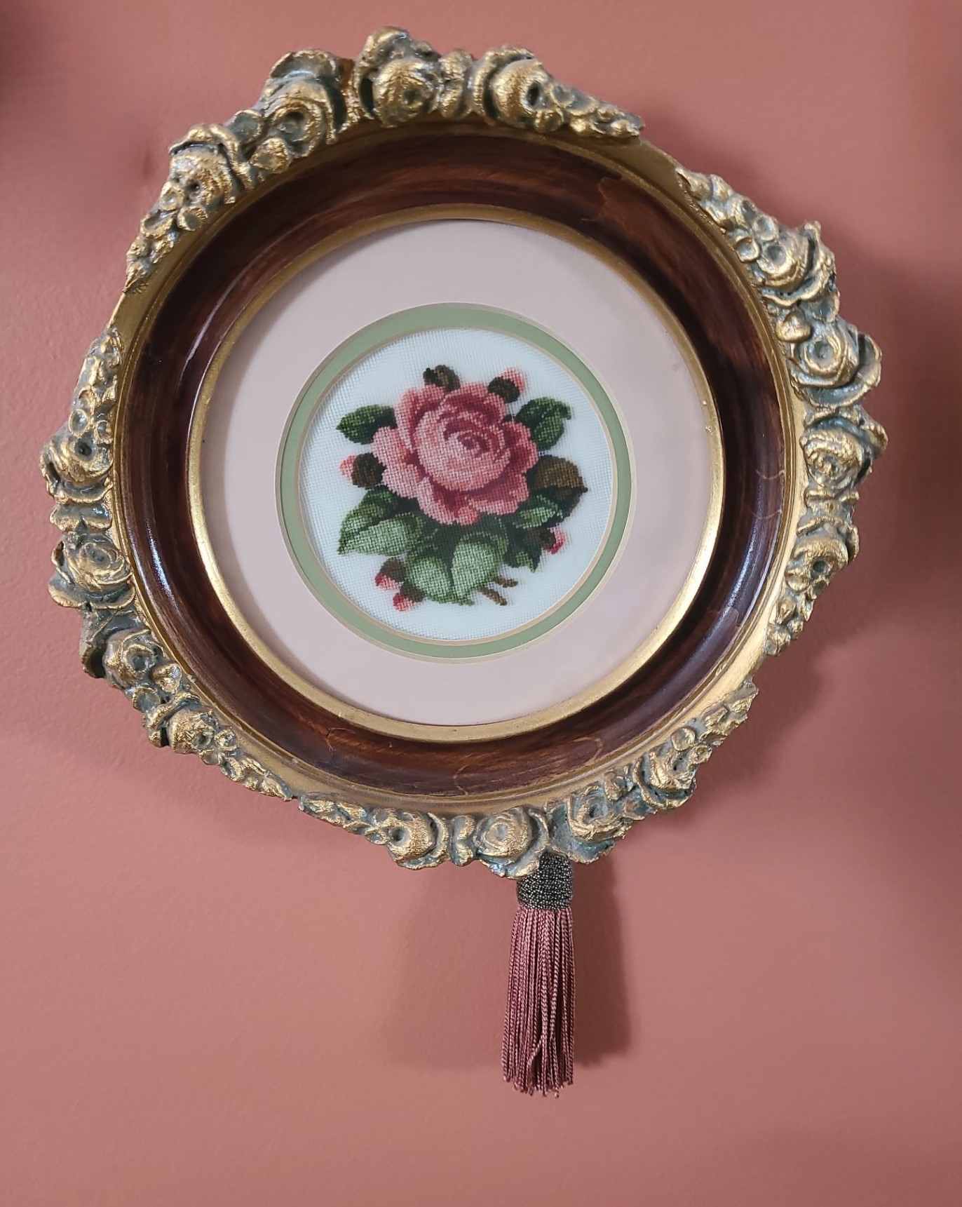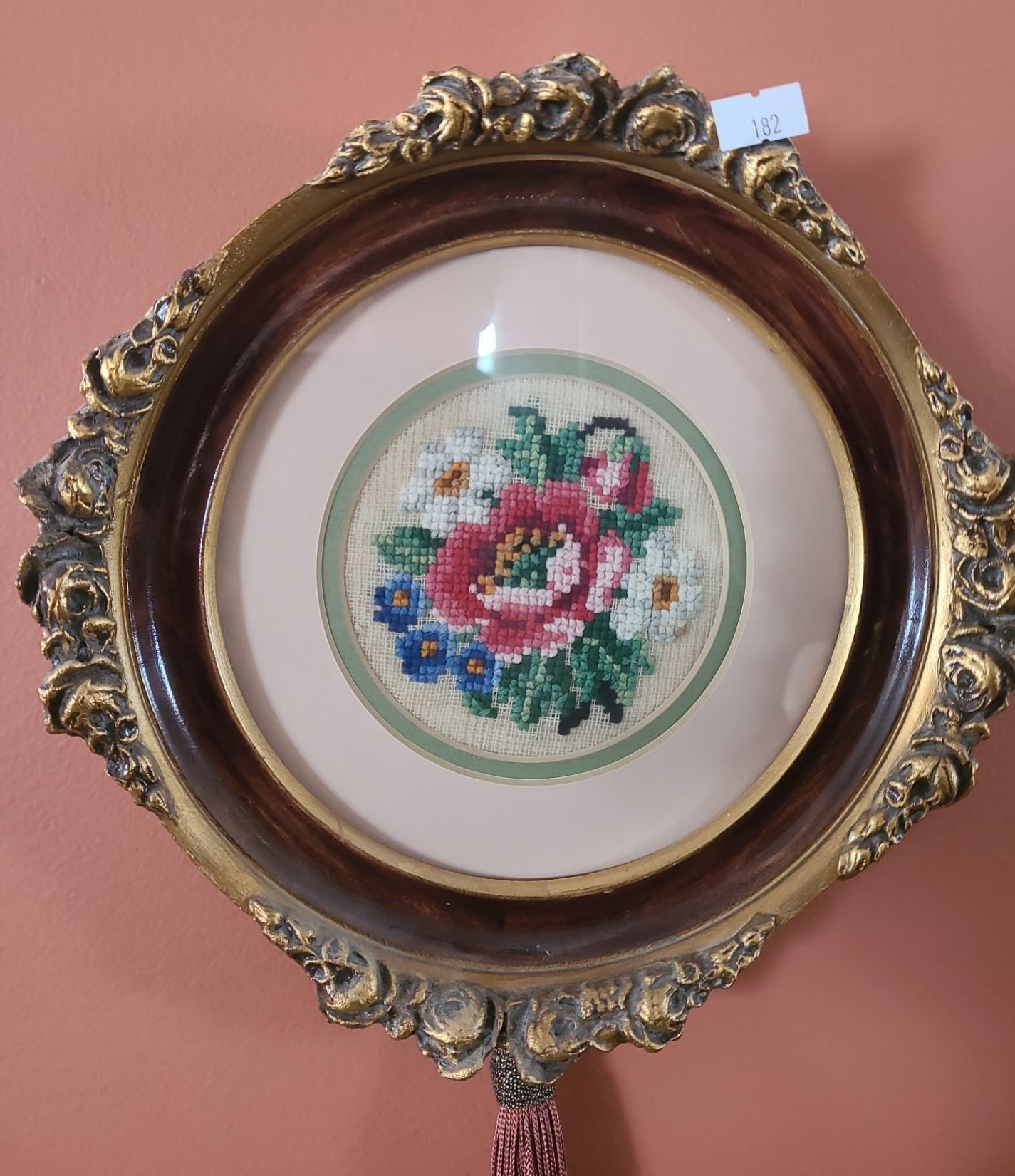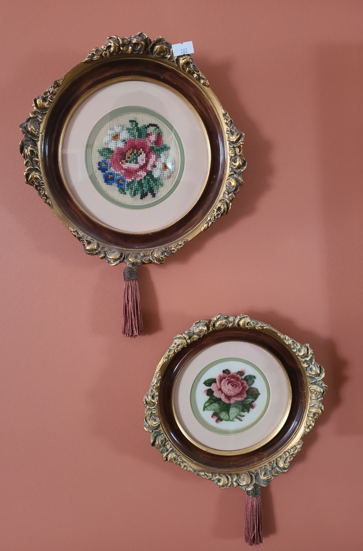Pair of Framed Needlepoint Flowers 9.5 X 9.5