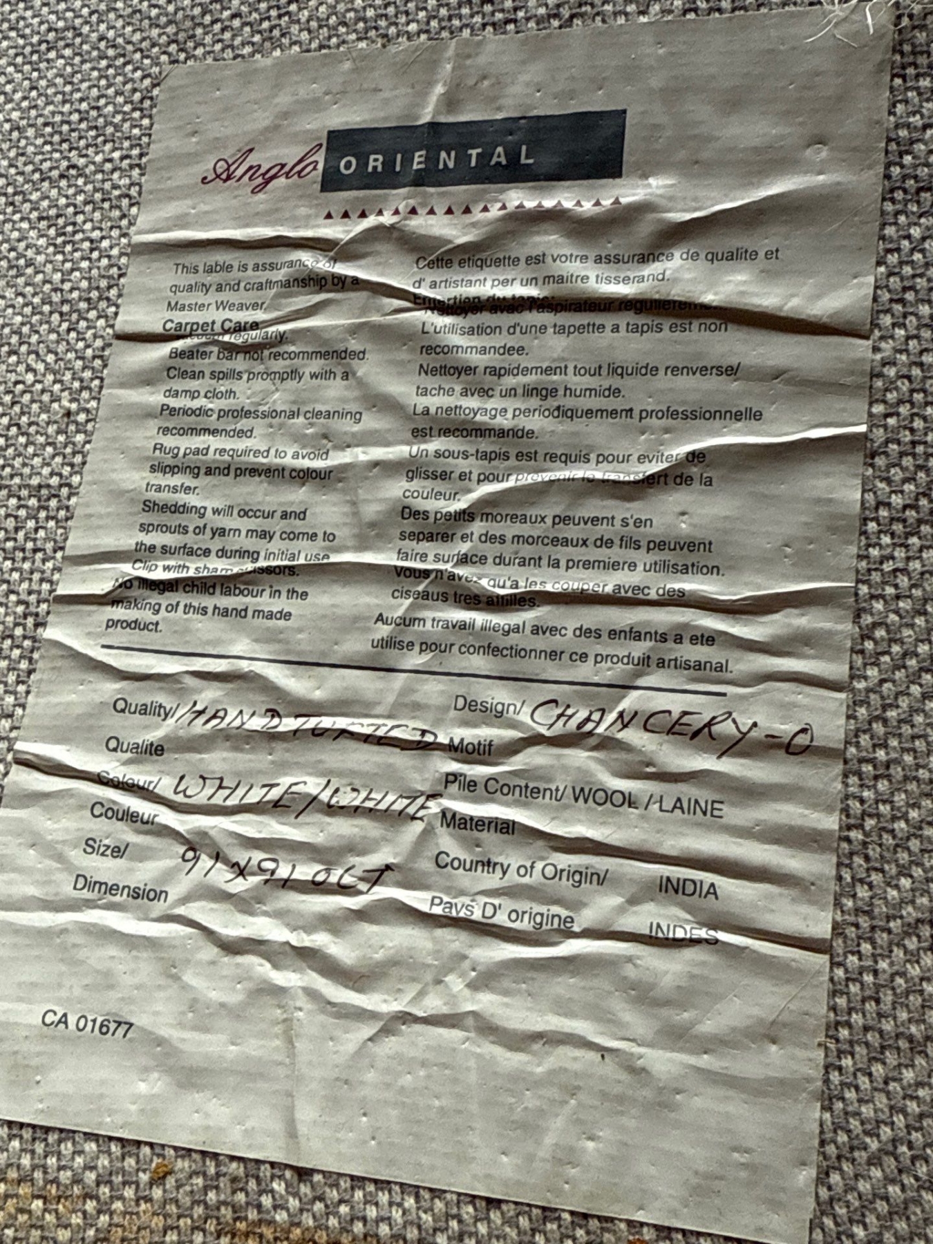 Pair of Rugs Incl. Angelo Oriental Wool 91x91 Hand Tufted Rug (Wear, See Pics) & Entryway Rug
