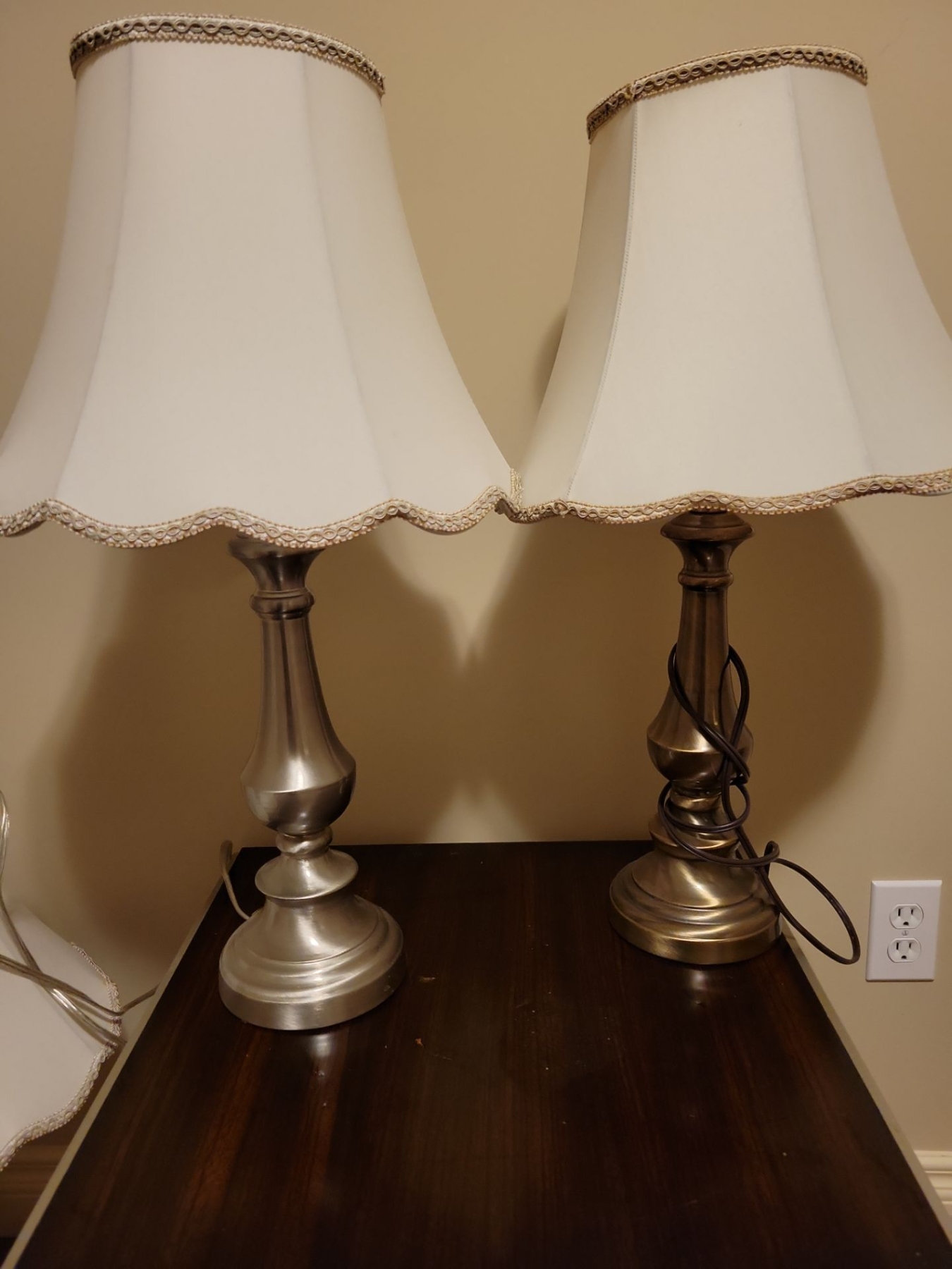 Pair of Shabby Chic Table Lamps 25T - 1 Shade Has Discoloration