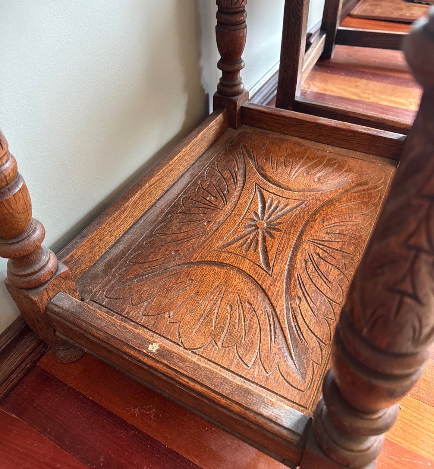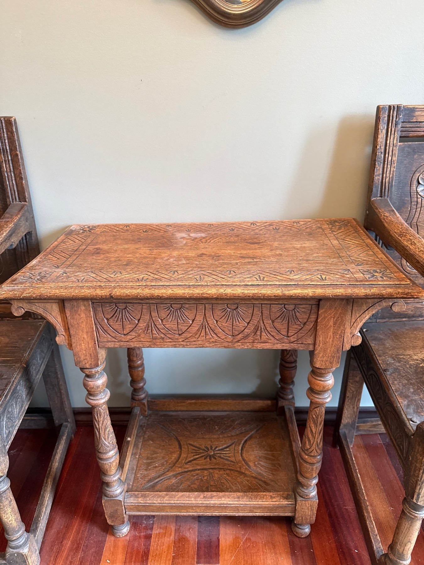 Pair of Solid Wood Antique Armchairs w/ Matching Solid Wood Antique Side Table (29W, 17D, 28T)