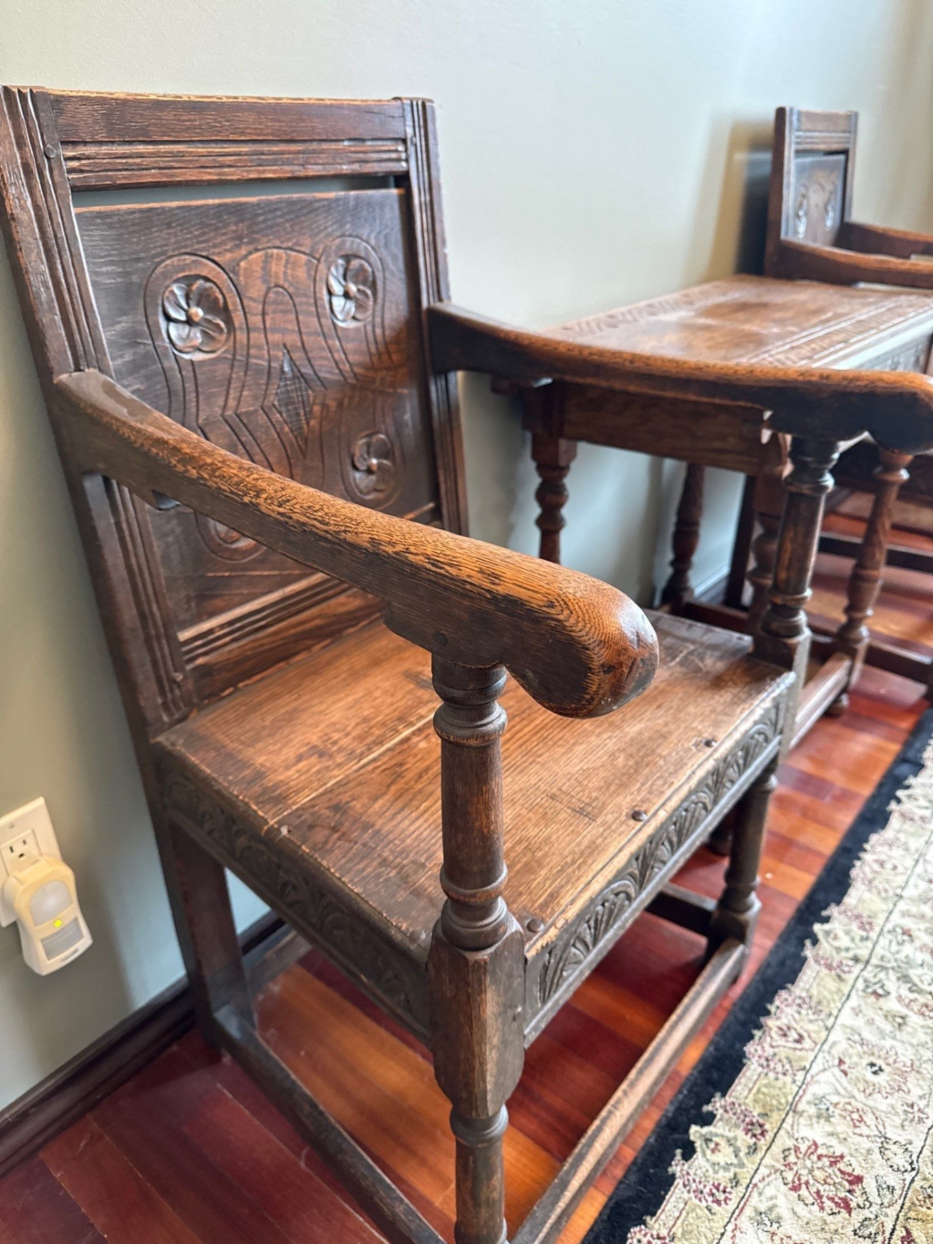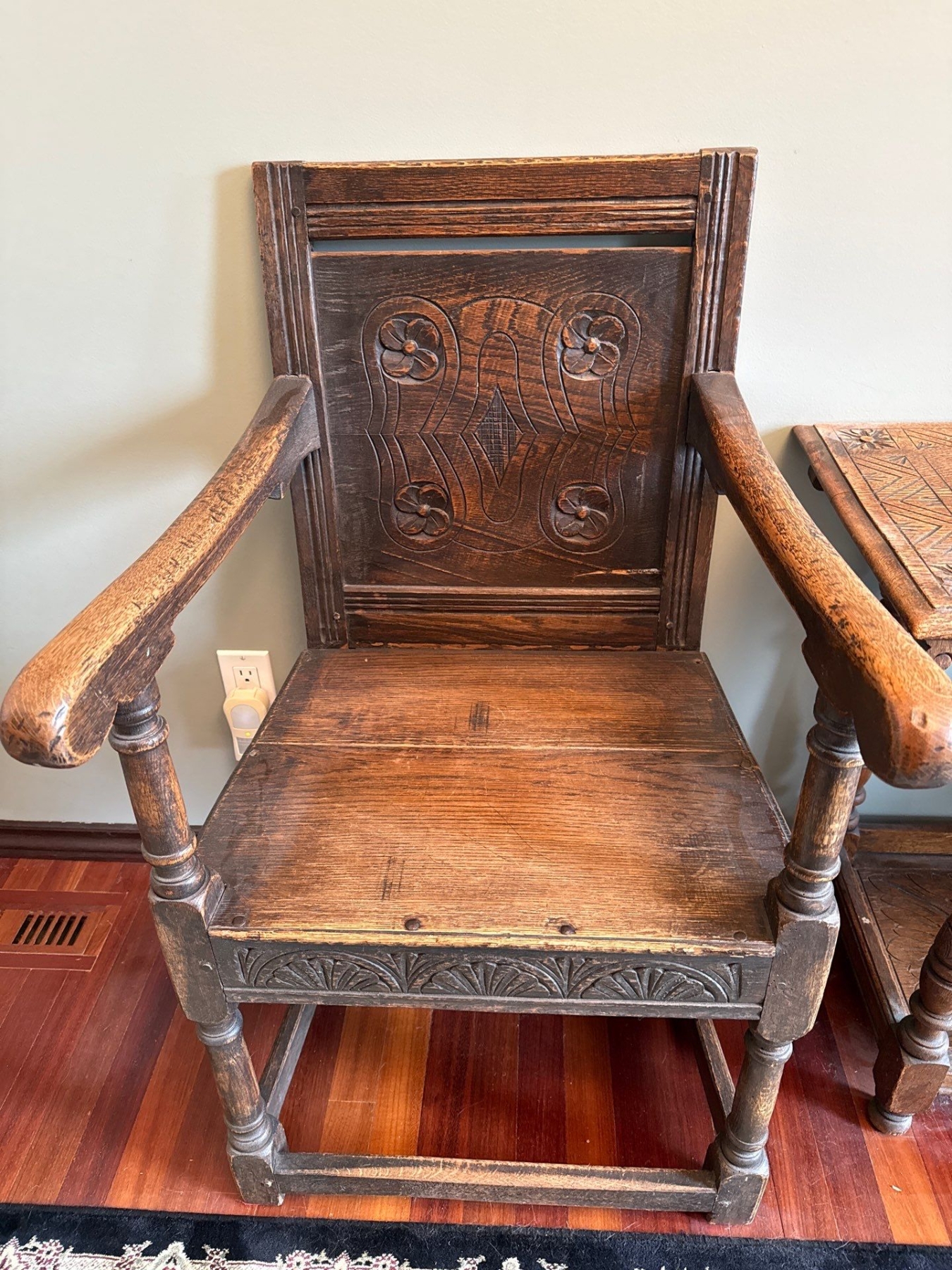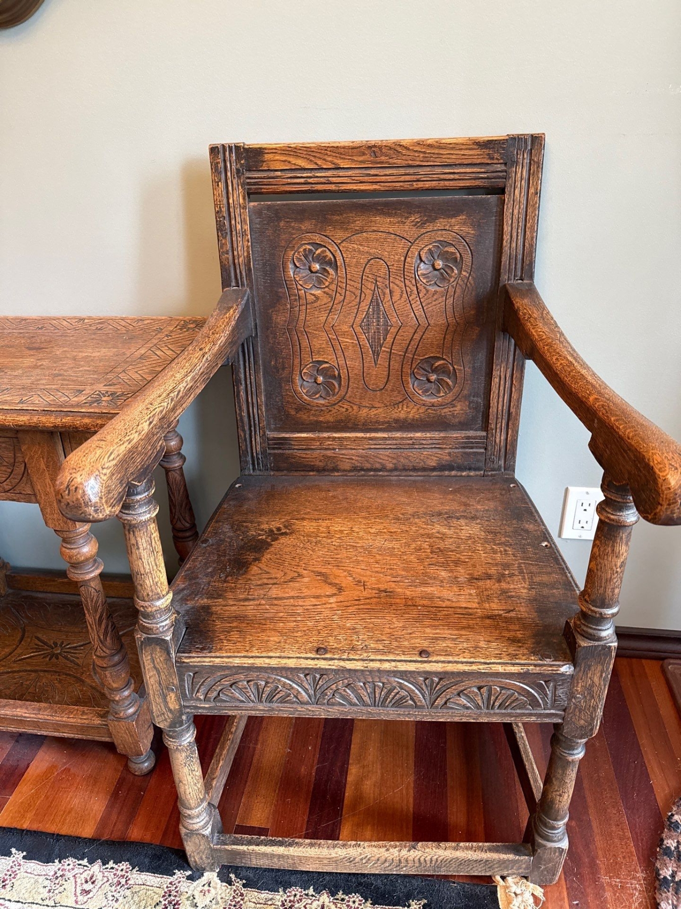 Pair of Solid Wood Antique Armchairs w/ Matching Solid Wood Antique Side Table (29W, 17D,  28T)