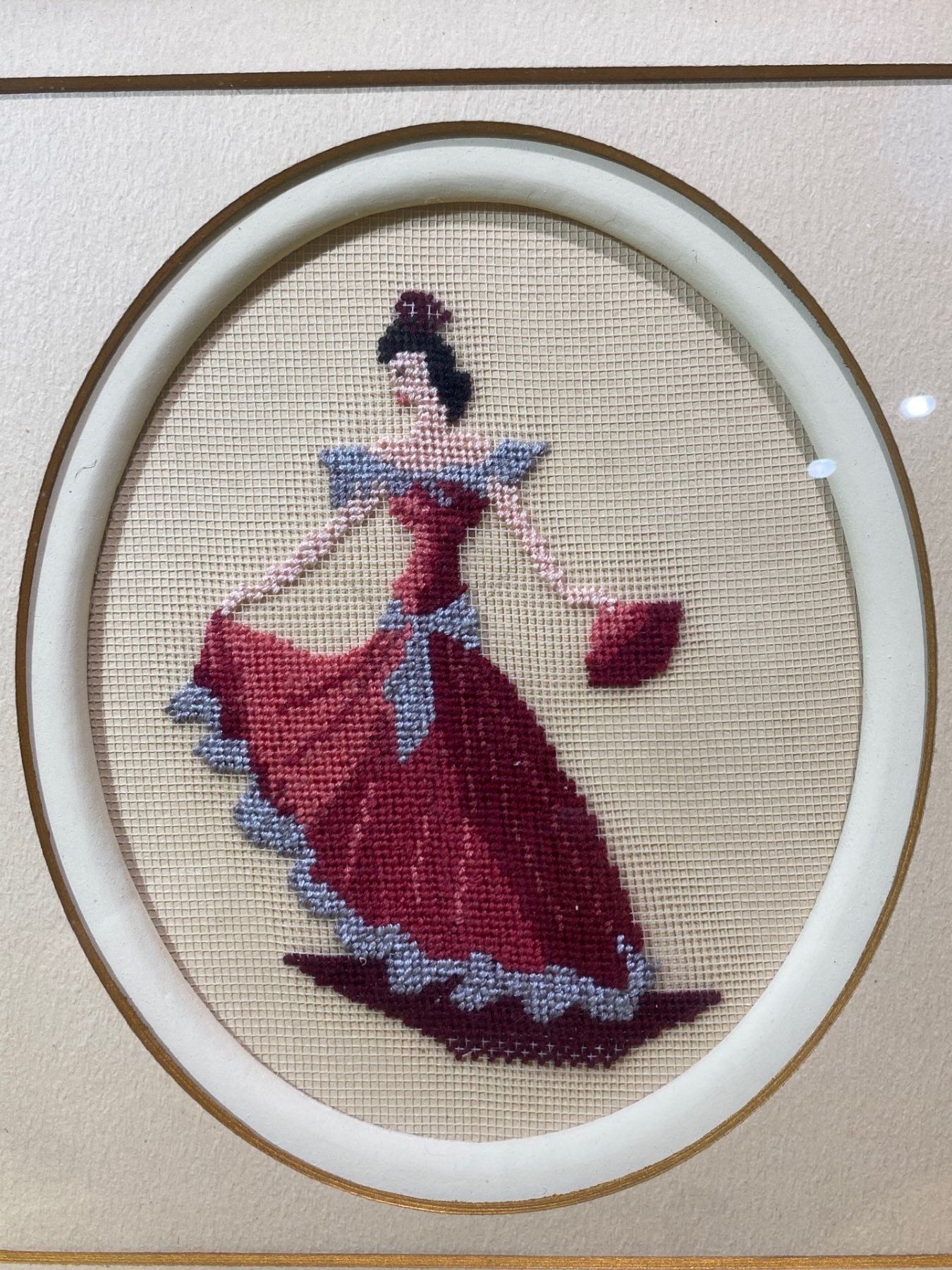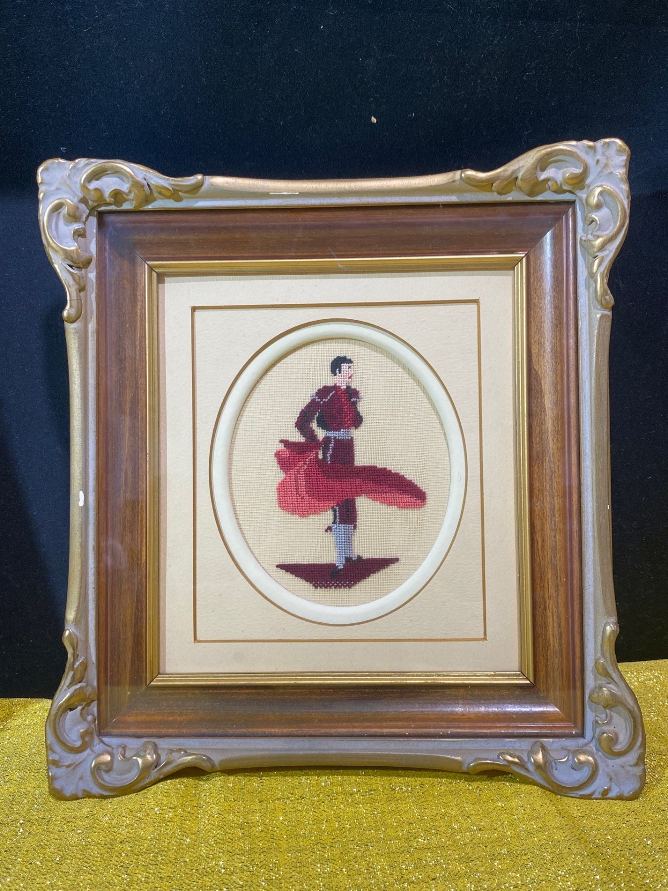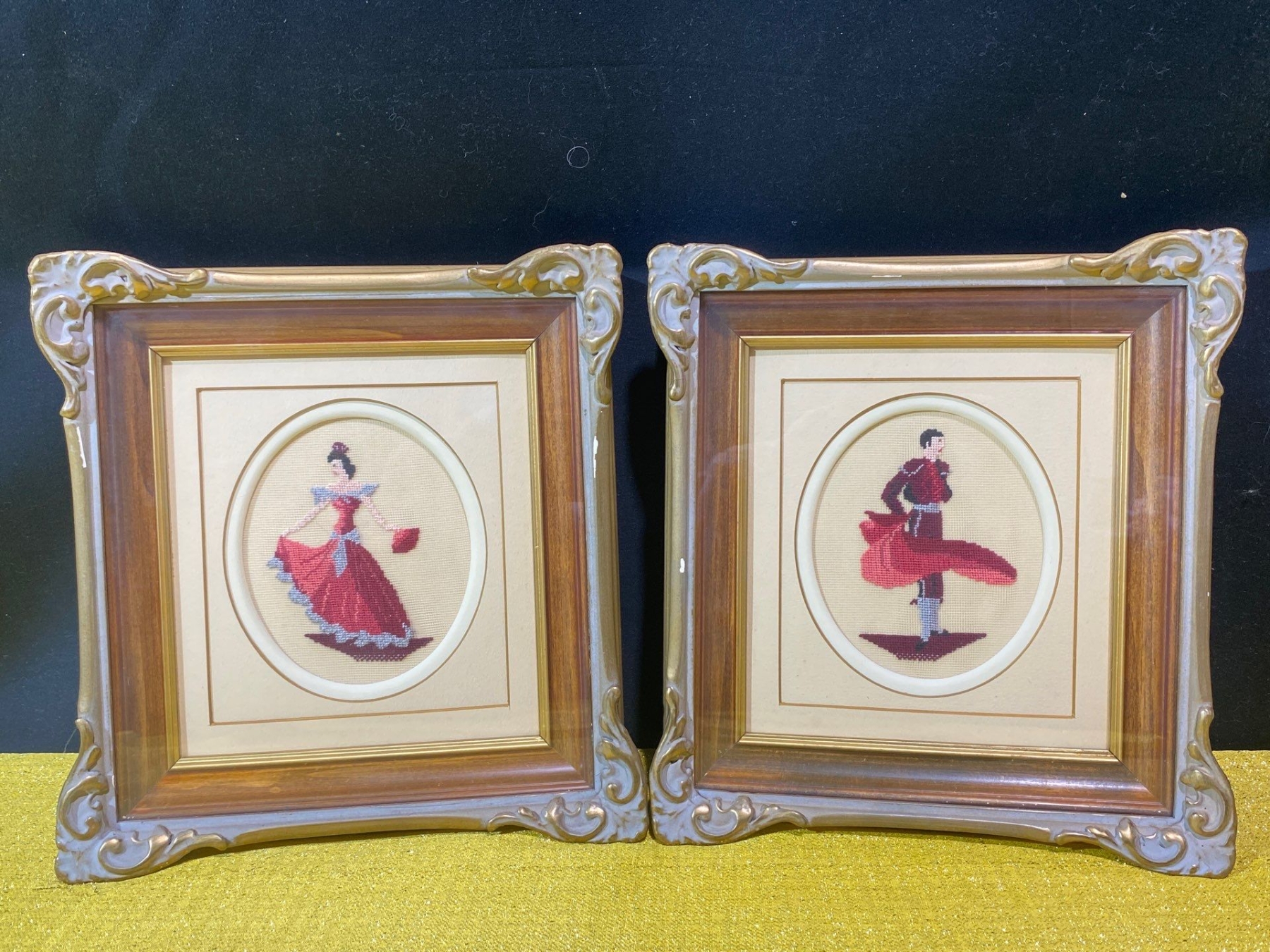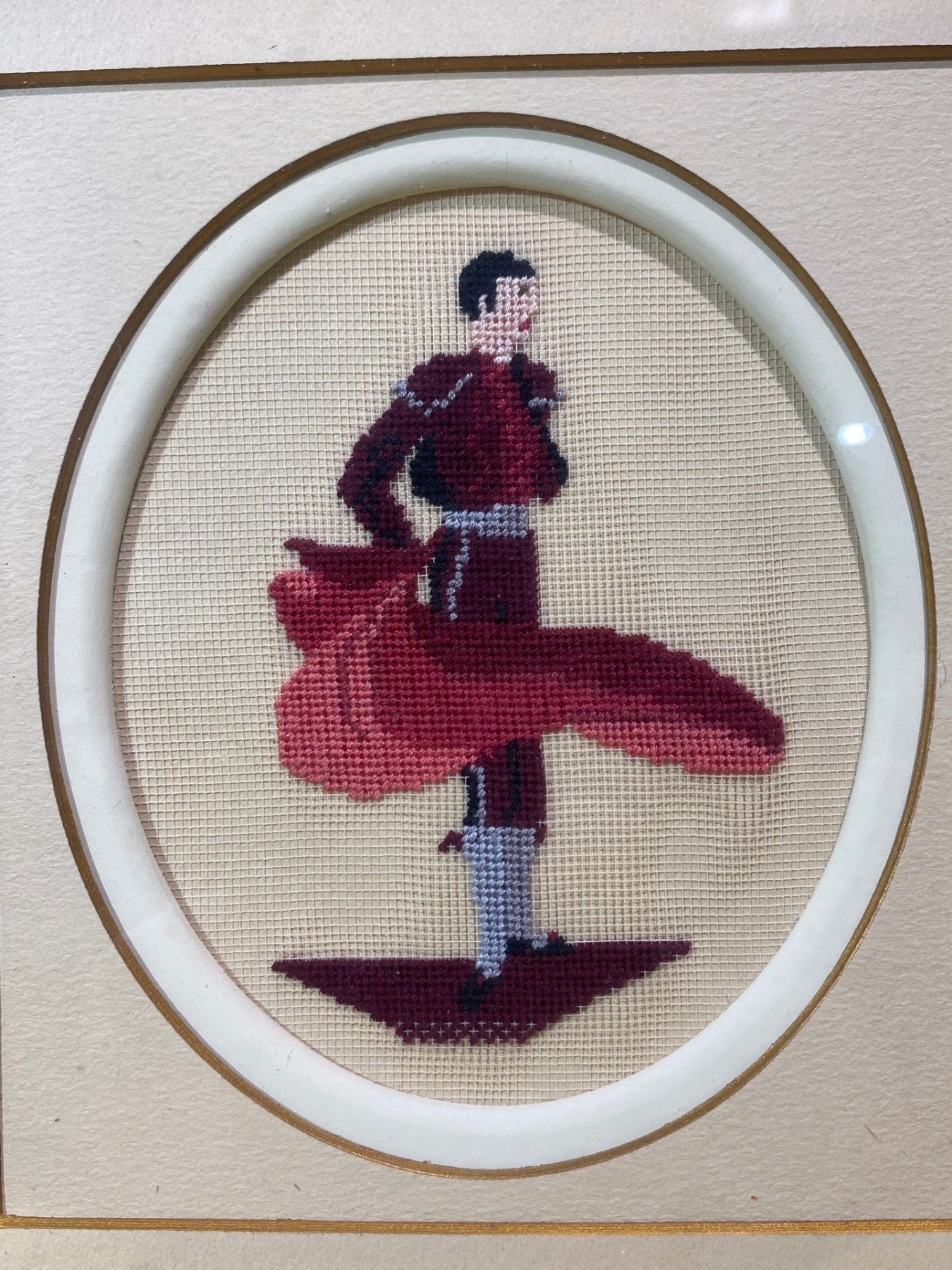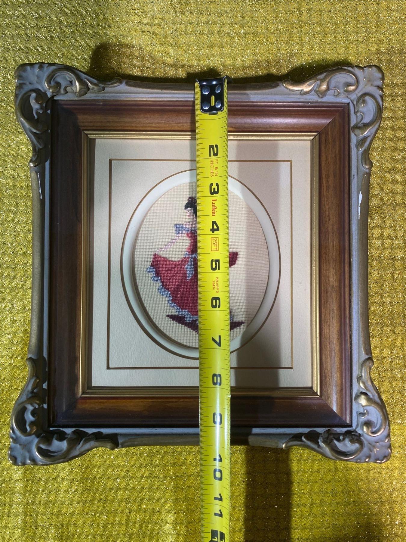 This pair of vintage framed needlepoint artworks vividly depicts traditional Spanish culture, featuring a Flamenco dancer and a Matador. Each piece showcases intricate stitching, rich colors, and careful craftsmanship, bringing movement and drama to these iconic subjects. A charming set for collectors of textile art or enthusiasts of Spanish-themed décor.