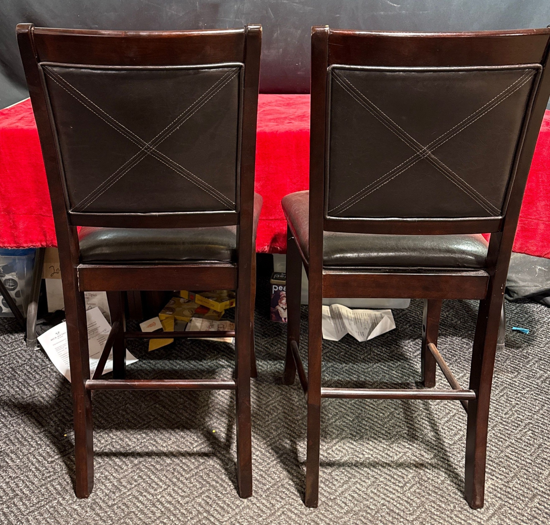 Pair of Wood and  Leather  Chairs, no rips or stains (19Wx17Dx41H, seat 23H)