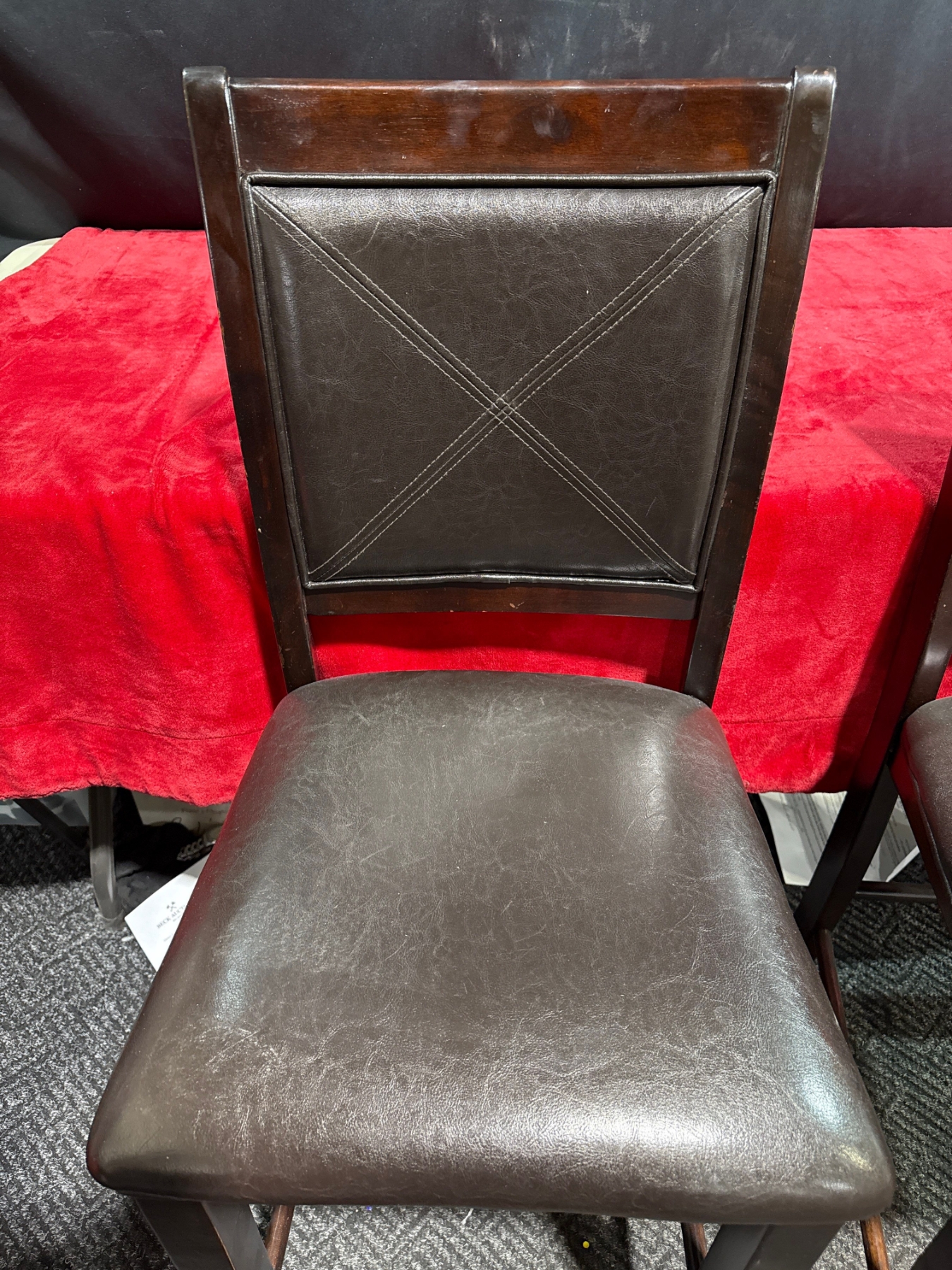 Pair of Wood and "Leather" Chairs, no rips or stains (19Wx17Dx41H, seat 23H)