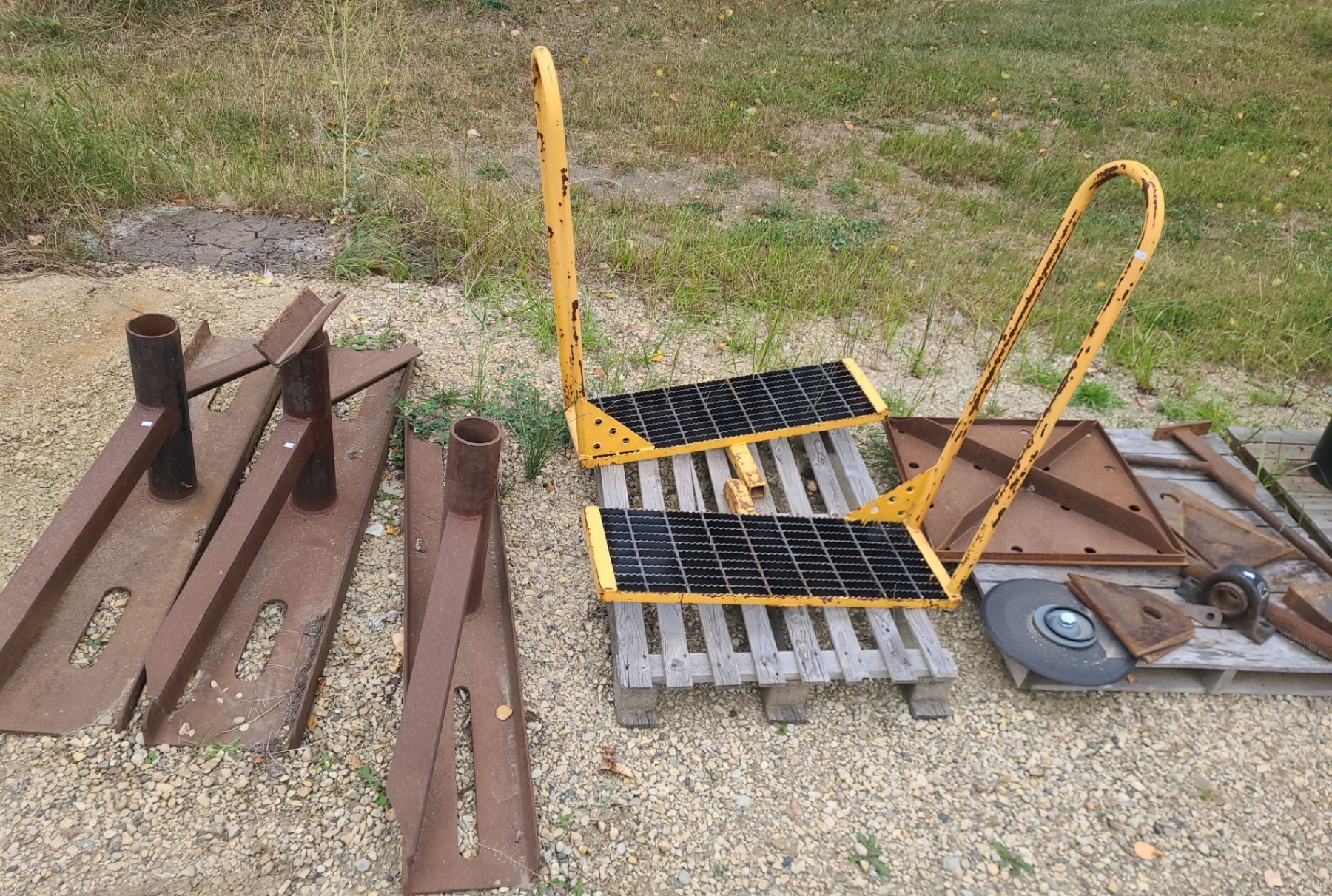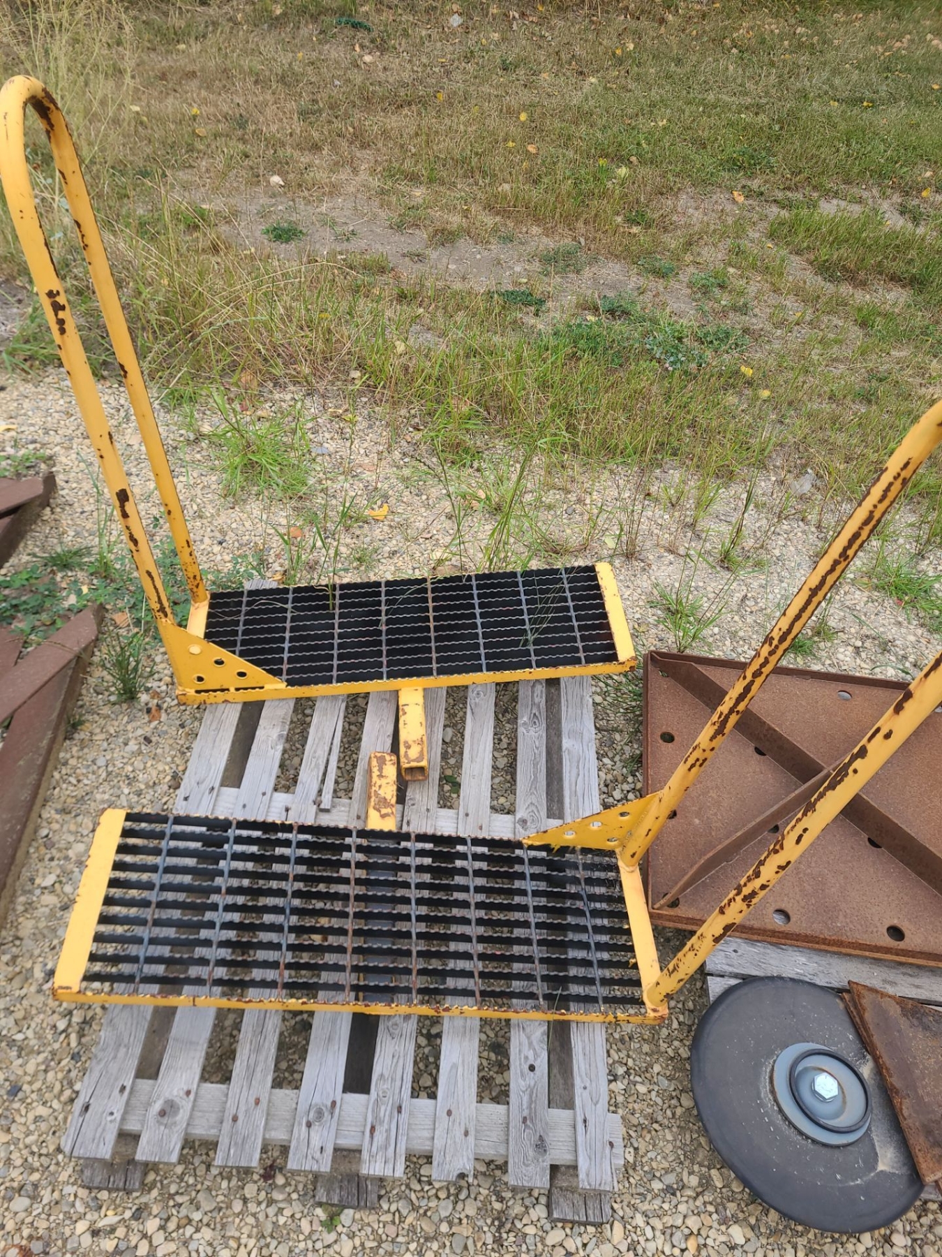 Pallet w/ Beams12 W, 63 D, 22 T, Yellow Platforms Steps for Pickup 37 W, 20 D, 44 T, Square 27 X 27